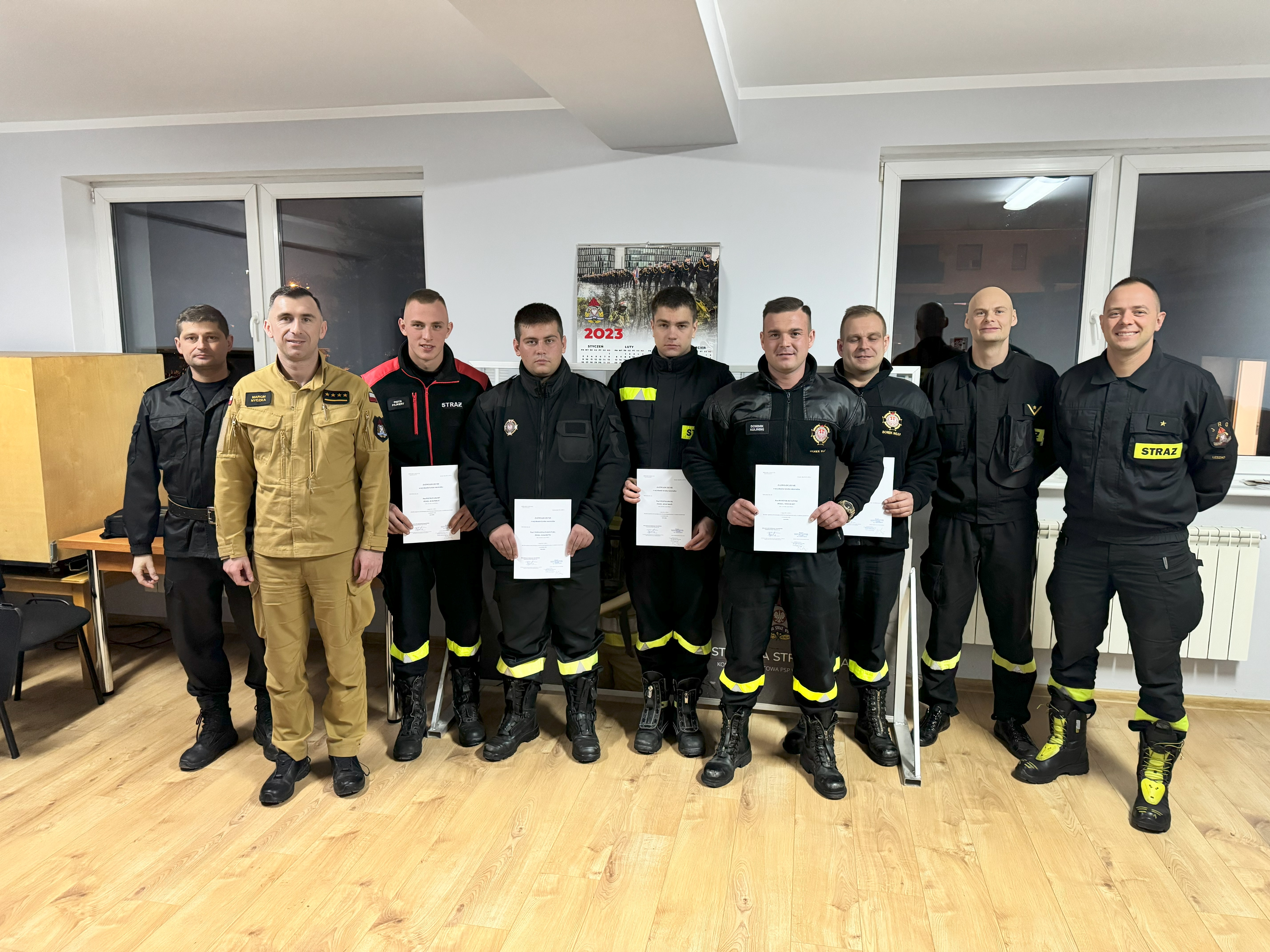 Na zakończenie komendant powiatowy PSP w Gostyniu st. kpt. Marcin Nyczka wręczył stosowane zaświadczenia wszystkim druhom, którzy pozytywnie ukończyli kurs.