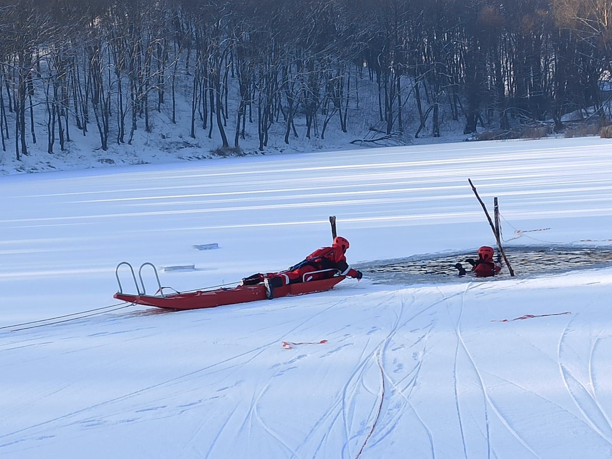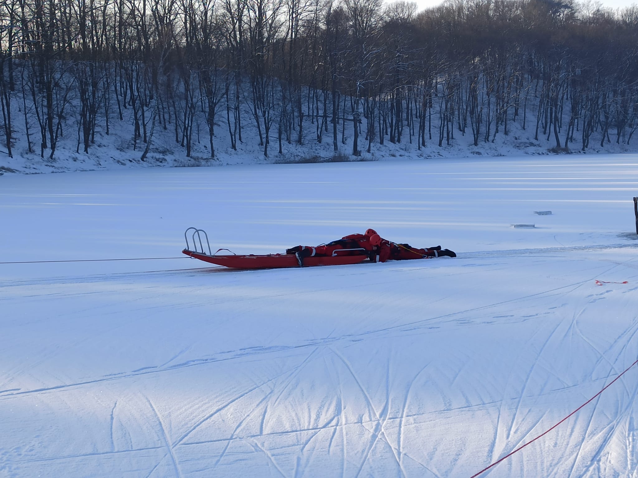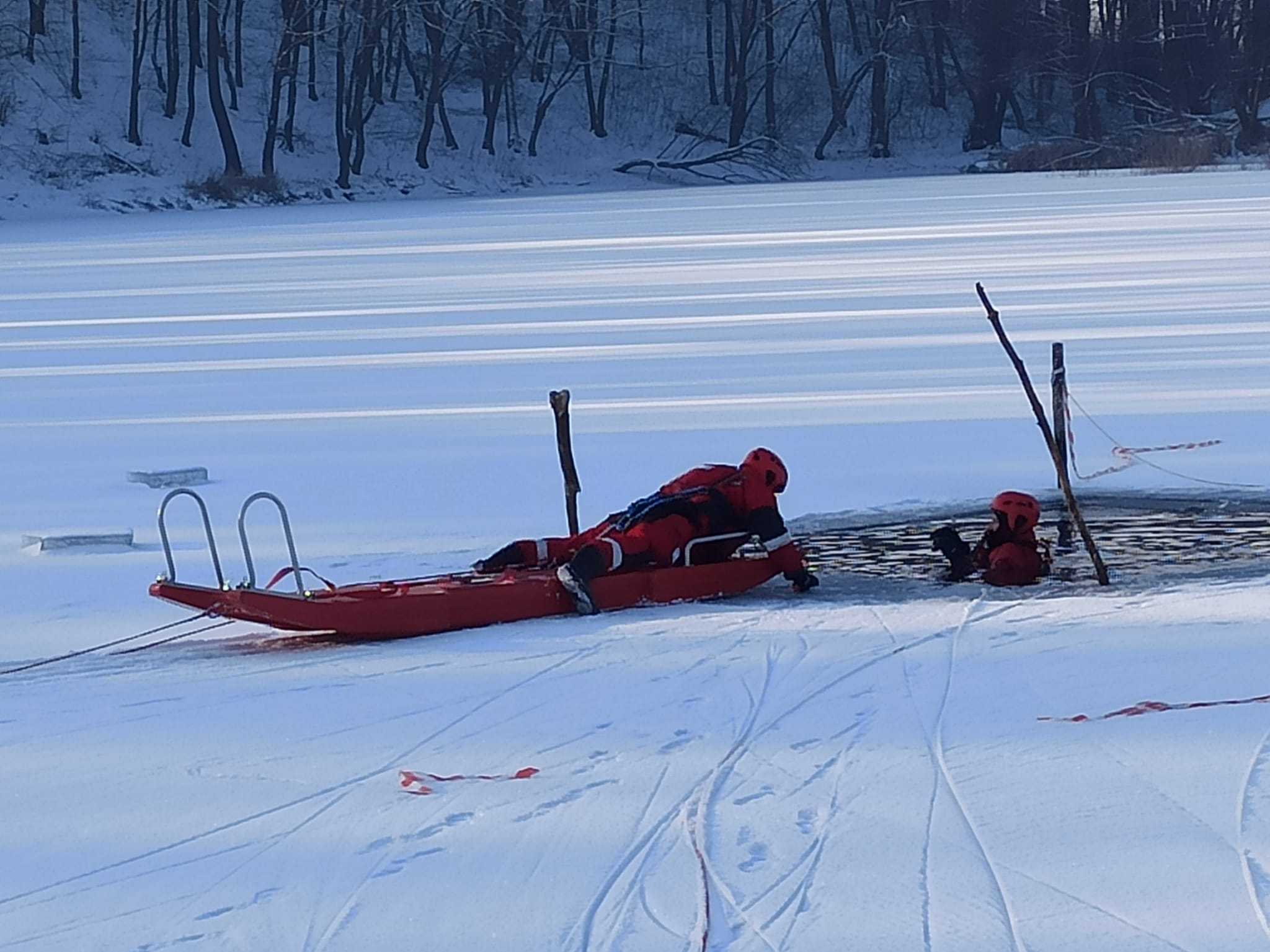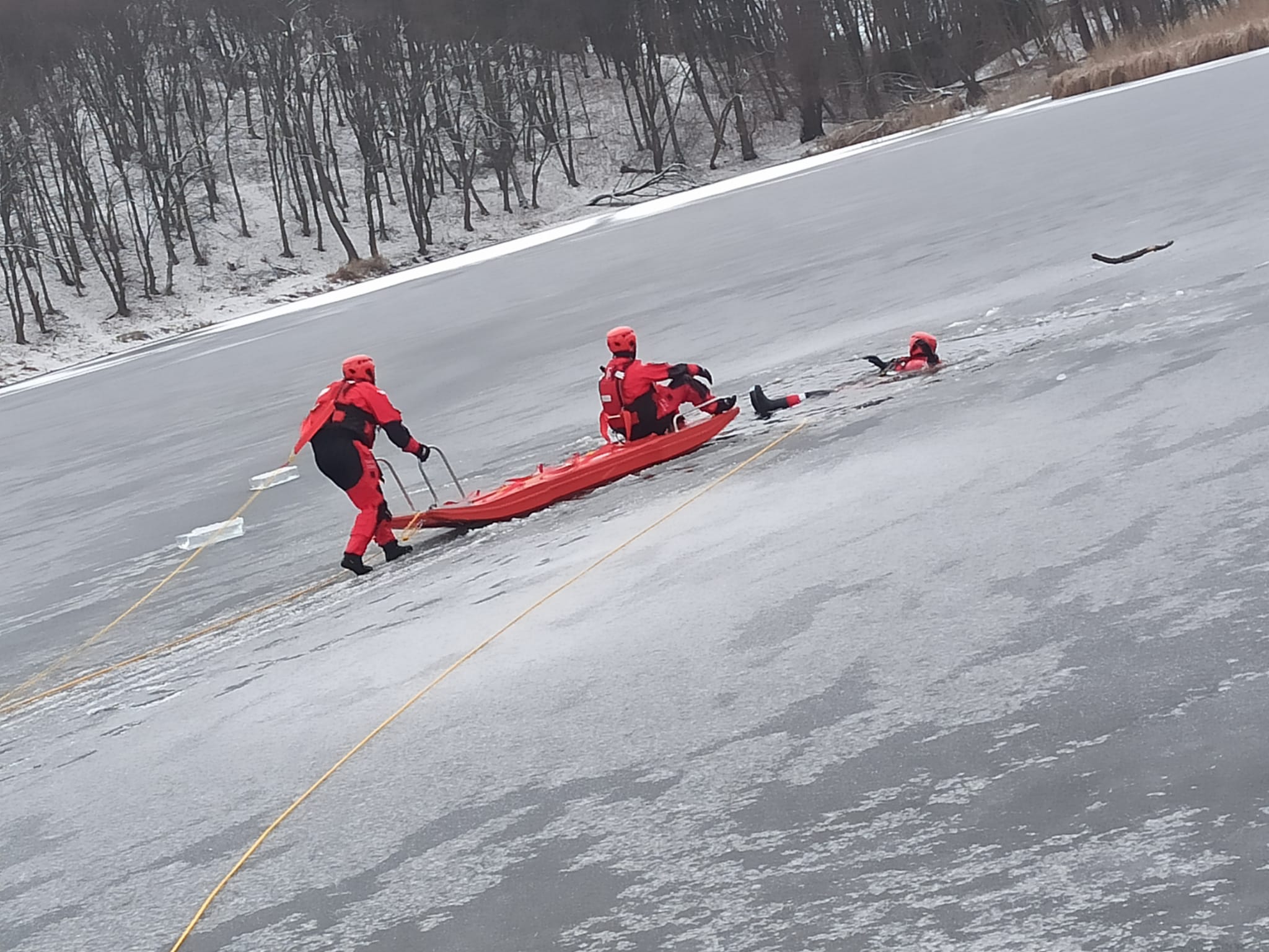 Bezpieczne ferie 2024. Ćwiczenia doskonalące z zakresu ratownictwa lodowego.