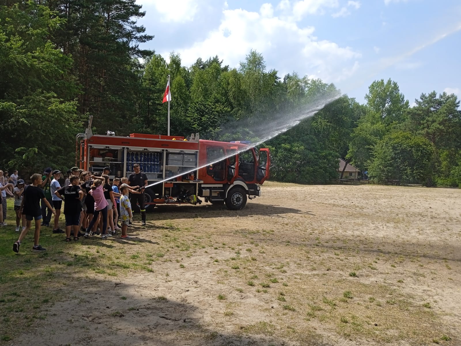 Poza powyższymi strażacy zgodnie z ww. „Protokołem uzgodnień…..” realizują działania edukacyjne w ramach prewencji społecznej i kampanii „Bezpieczne Wakacje 2023” przeprowadzając w tym zakresie pogadanki na temat zasad bezpiecznych zachowań podczas wypoczynku letniego połączone z prezentacją sprzętu pożarniczego.