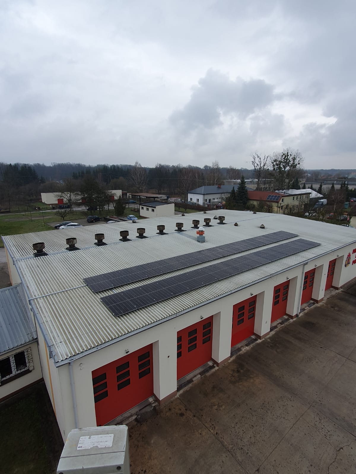 W dniu 21 marca 2024r. zakończył się montaż instalacji fotowoltaicznej na obiekcie Komendy Powiatowej PSP w Gostyninie. Moduły fotowoltaiczne zostały zamontowane na dachu budynku garażowego Komendy, a ich łączna moc to 18,5 kWp.