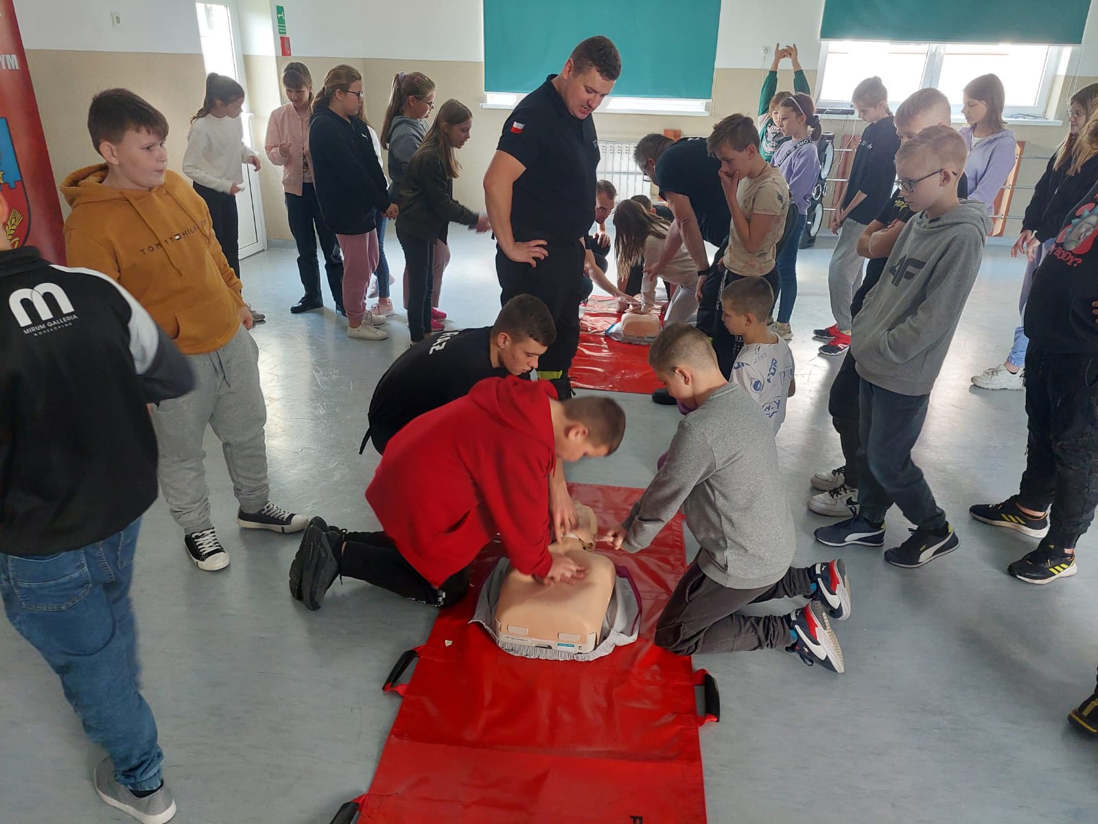 W dniu 3 listopada 2022r., strażacy Komendy Powiatowej PSP w Gostyninie oraz druhowie z jednostki Ochotniczej Straży Pożarnej w Szczawinie Kościelnym przeprowadzili kolejny panel dydaktyczny z zakresu kwalifikowanej pierwszej pomocy w Szkole Podstawowej im. Andrzeja Małkowskiego w Szczawinie Kościelnym. Zajęcia edukacyjne przeprowadzono w ramach kampanii społecznej „Jesteś widoczny, jesteś bezpieczny”, a wzięli w nich udział uczniowie klas IV-VI w ilości 89 uczniów.