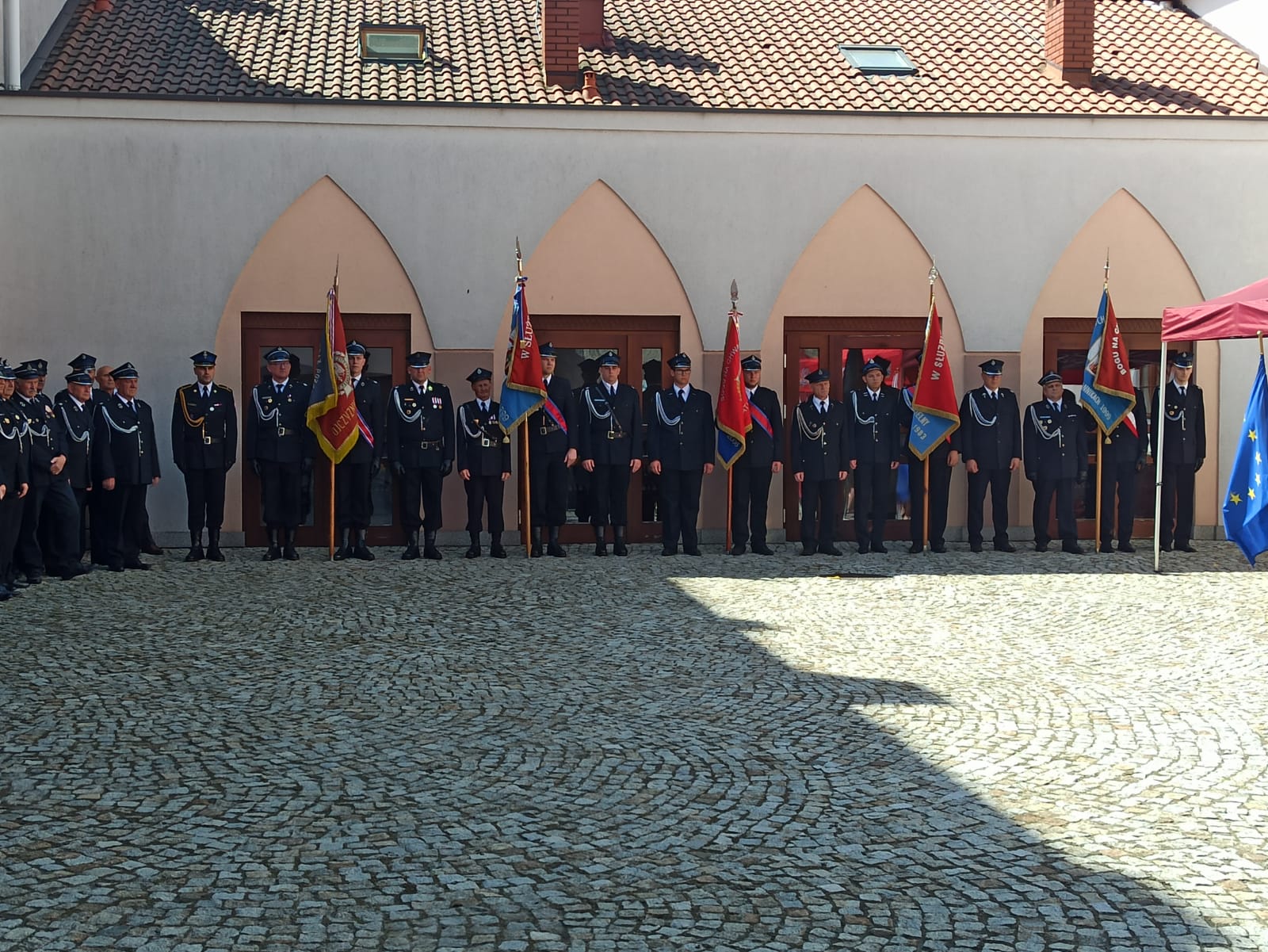 Uroczystość rozpoczęła się złożeniem meldunku nadbryg. Jarosławowi Nowosielskiemu Mazowieckiemu Komendantowi Wojewódzkiemu Państwowej Straży Pożarnej, który dokonał przeglądu pododdziałów i przywitał się z pocztami sztandarowymi. Następnie podniesiono flagę państwową i odegrano hymn państwowy.
