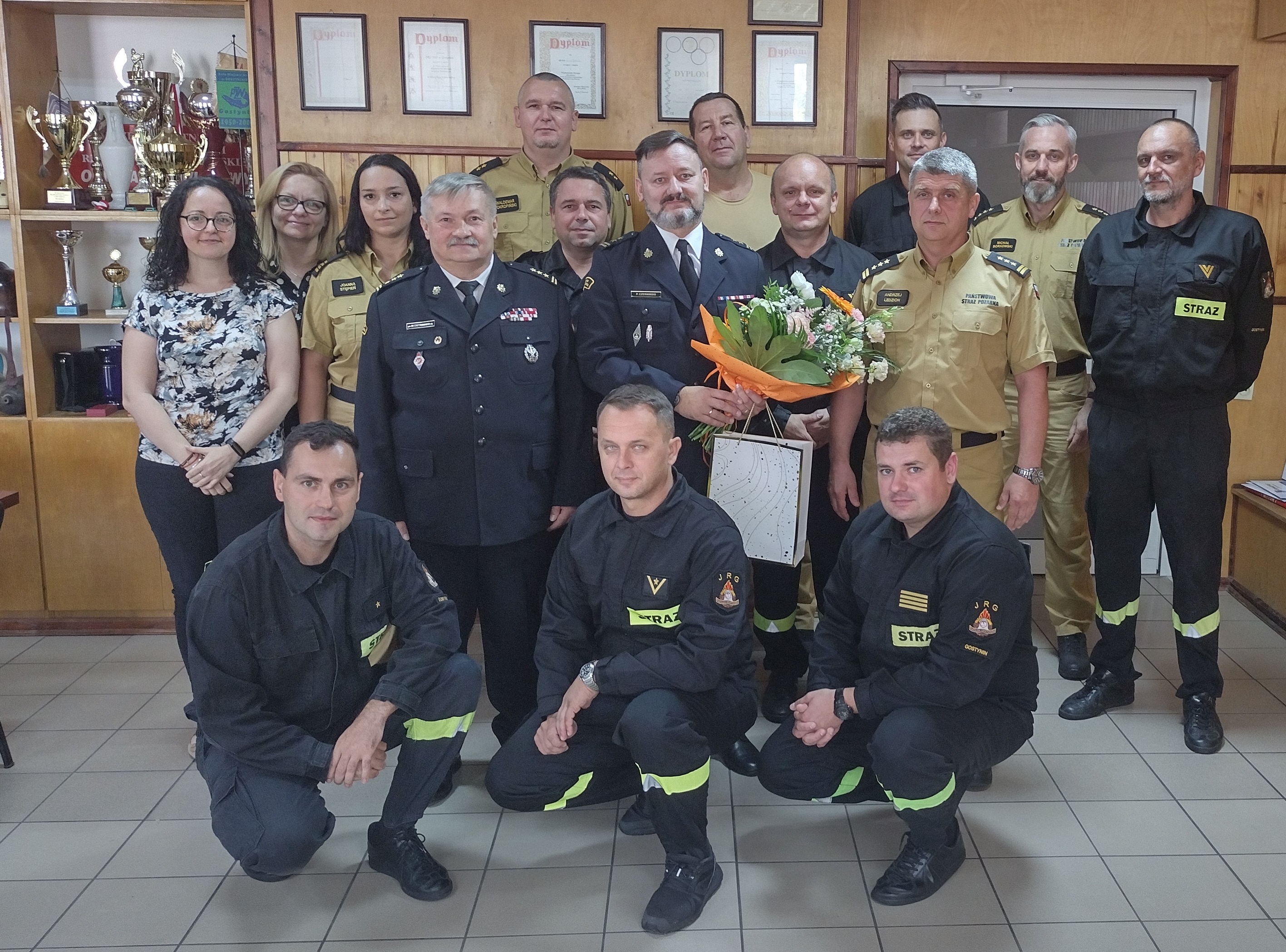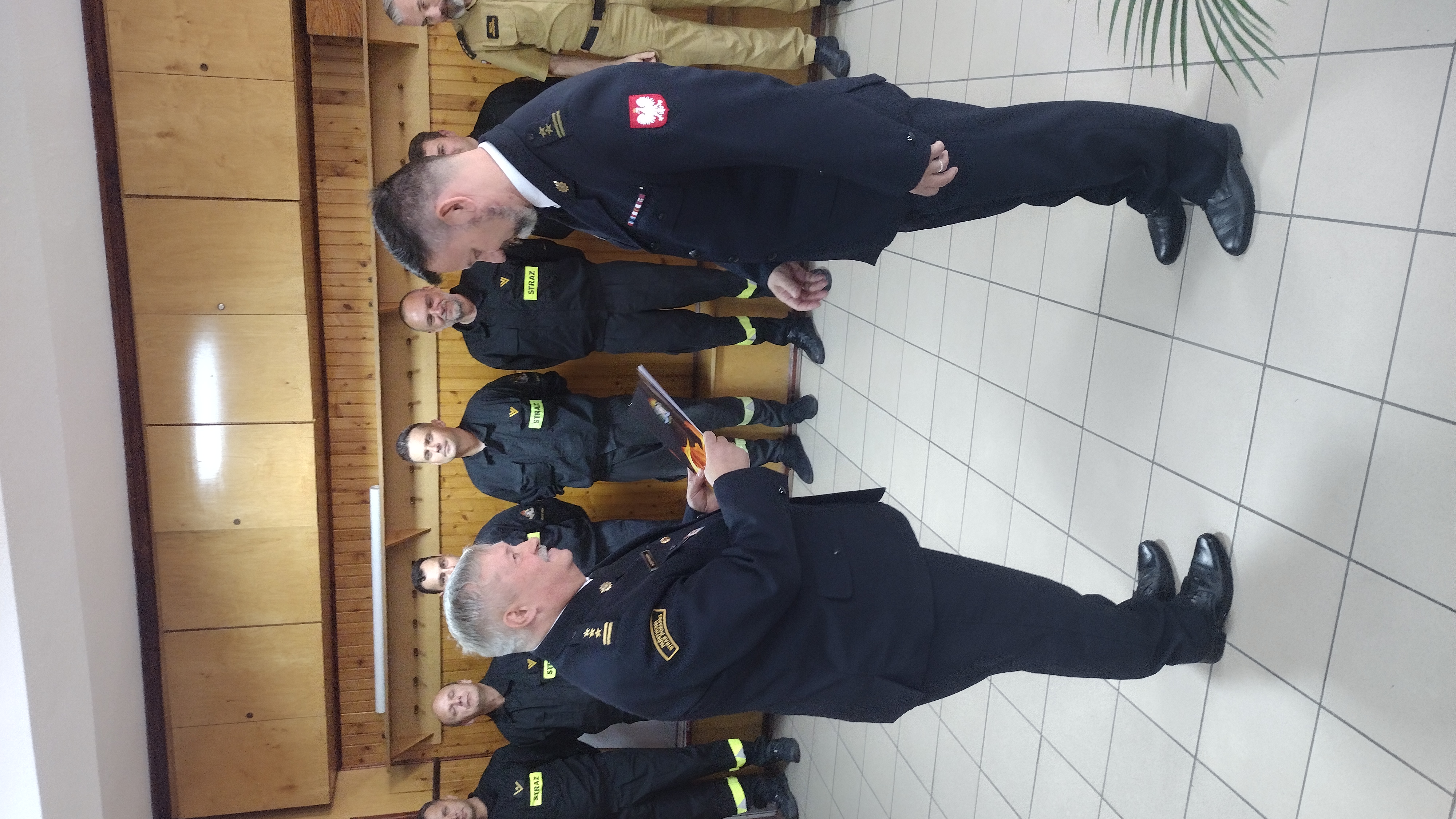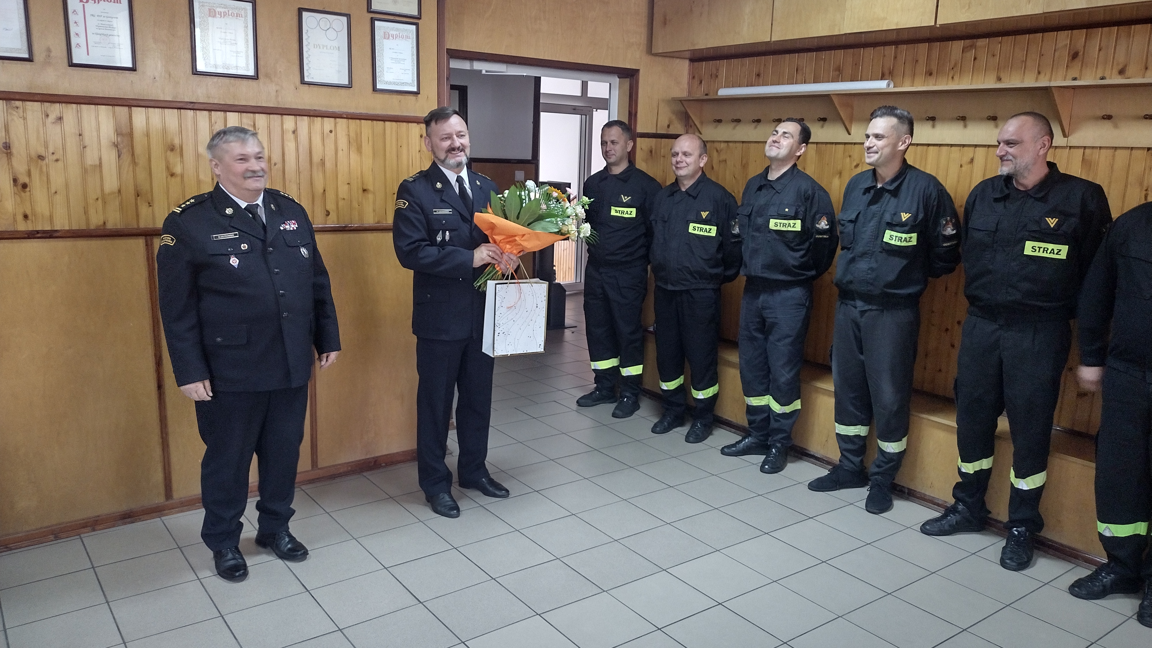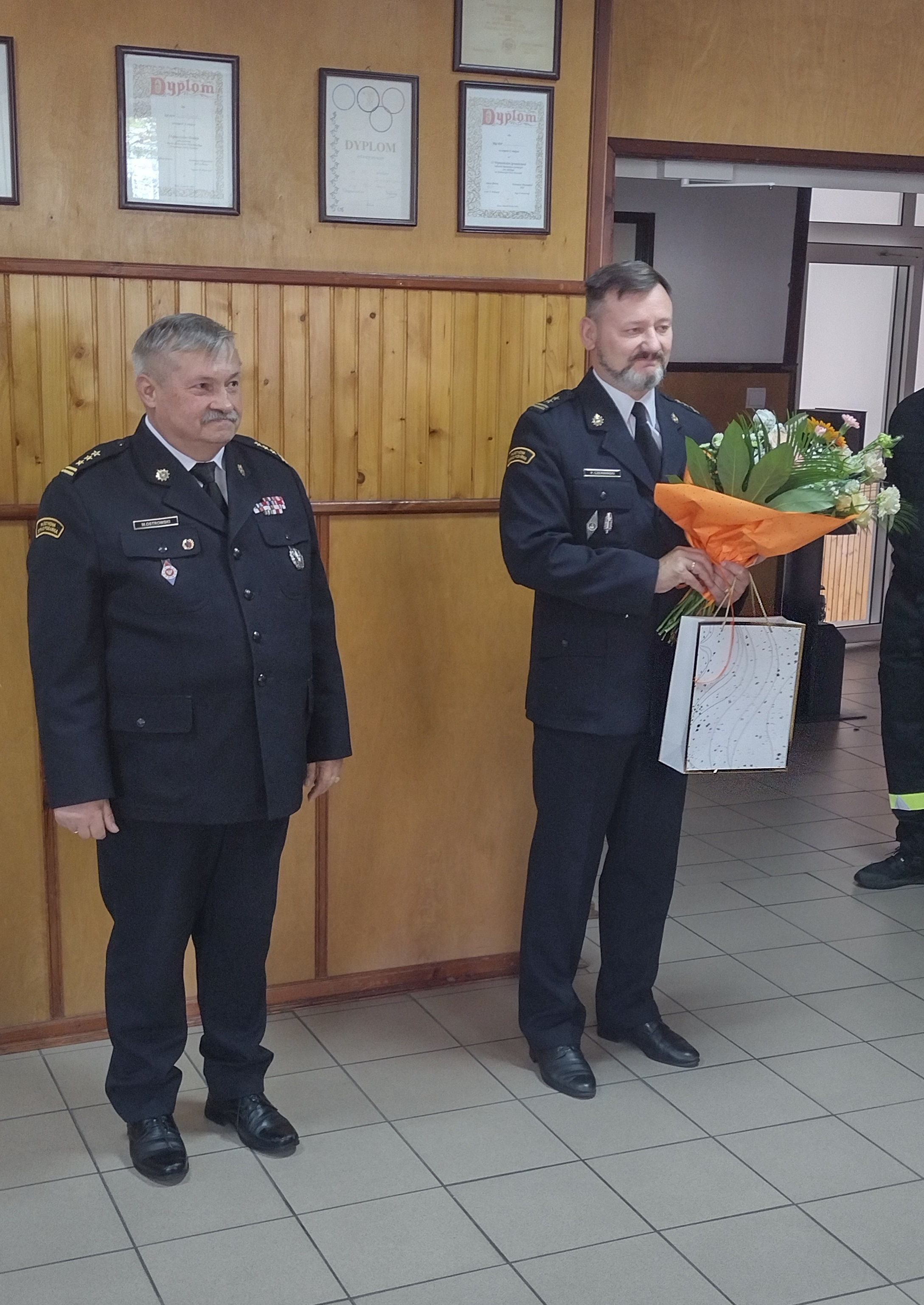 Podczas uroczystej zbiórki st. bryg. Mariusz Ostrowski Komendant Powiatowy PSP w Gostyninie w imieniu wszystkich funkcjonariuszy i pracowników cywilnych podziękował odchodzącemu funkcjonariuszowi za wspólną, wieloletnią współpracę, jak również skierował życzenia spełnienia marzeń, nowych wyzwań i dalszej realizacji życiowych pasji oraz zdrowia i sukcesów na nowym etapie życia.
