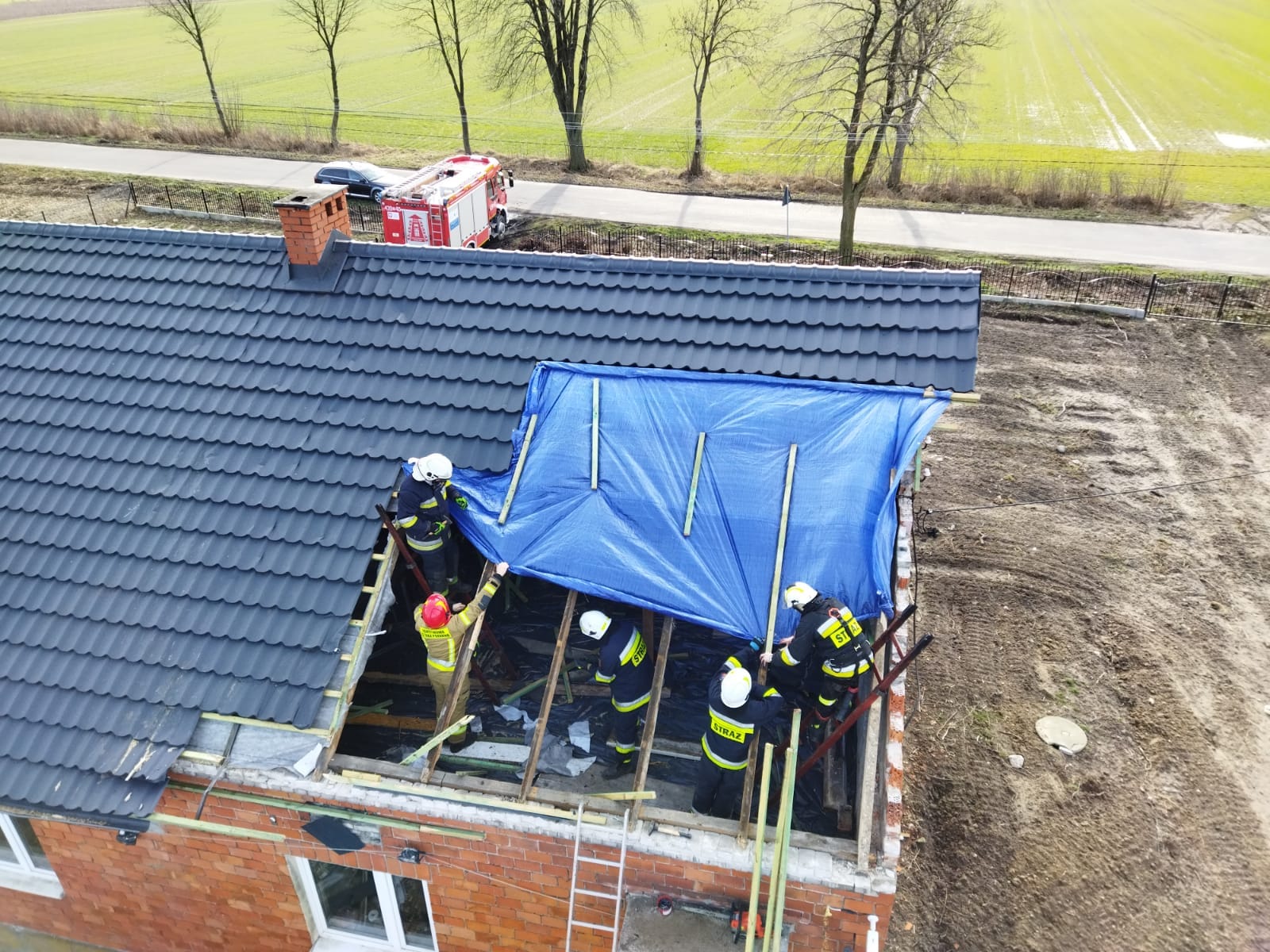 Łącznie odnotowano 26 zdarzeń związanych z oddziaływaniem warunków pogodowych. Interwencje dotyczyły głównie usuwania połamanych konarów oraz przewróconych drzew, uszkodzeń dachów na budynkach mieszkalnych, gospodarczych oraz inwentarskich.
