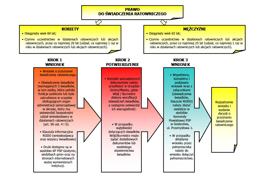 W związku z powyższym, Komenda Powiatowa Państwowej Straży Pożarnej w Gostyninie na zamieszczonej infografice przedstawia obieg dokumentów związanych ze złożeniem wniosku, a w załącznikach do artykułu umieszczono druki dokumentów wymagane do złożenia wniosku.