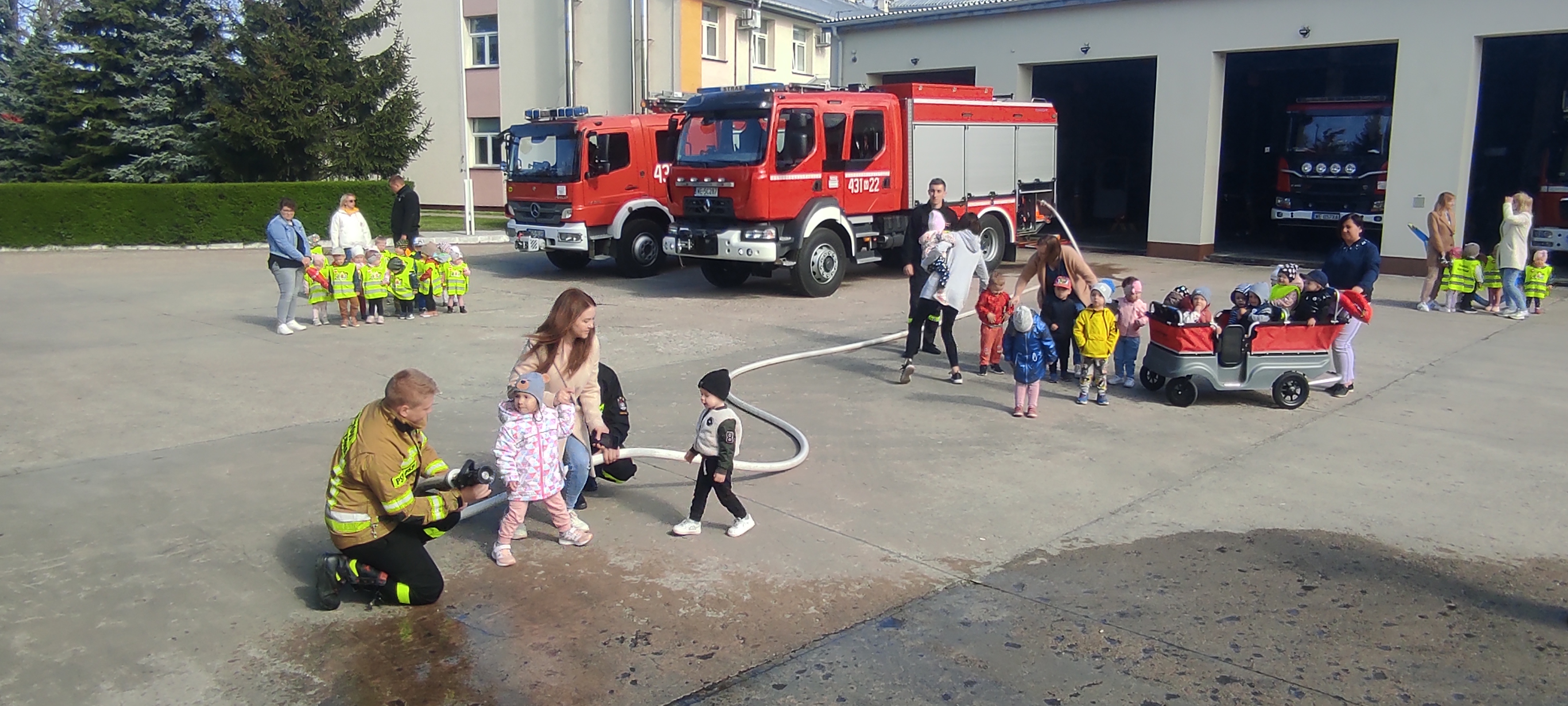 W dniu 4 maja 2022r., Komendę Powiatową Państwowej Straży Pożarnej w Gostyninie odwiedziły dzieci z Punktu Opieki nad Dziećmi „Zaczarowana Kraina” oraz "Bajkowy Zakątek" w Gostyninie. Podczas spotkania, w ramach prewencji społecznej, zostały przeprowadzone zajęcia w sali edukacyjnej „Ognik” gdzie omówione zostały zagrożenia pożarowe oraz podstawowe sposoby zachowania na wypadek ich wystąpienia. Podczas wizyty dzieci dowiedziały się z jakim rodzajem zagrożeń mierzą się strażacy, zapoznały się ze sprzętem, który wykorzystywany jest podczas działań. Ponadto został zaprezentowany sprzęt będący na wyposażeniu Jednostki Ratowniczo – Gaśniczej.