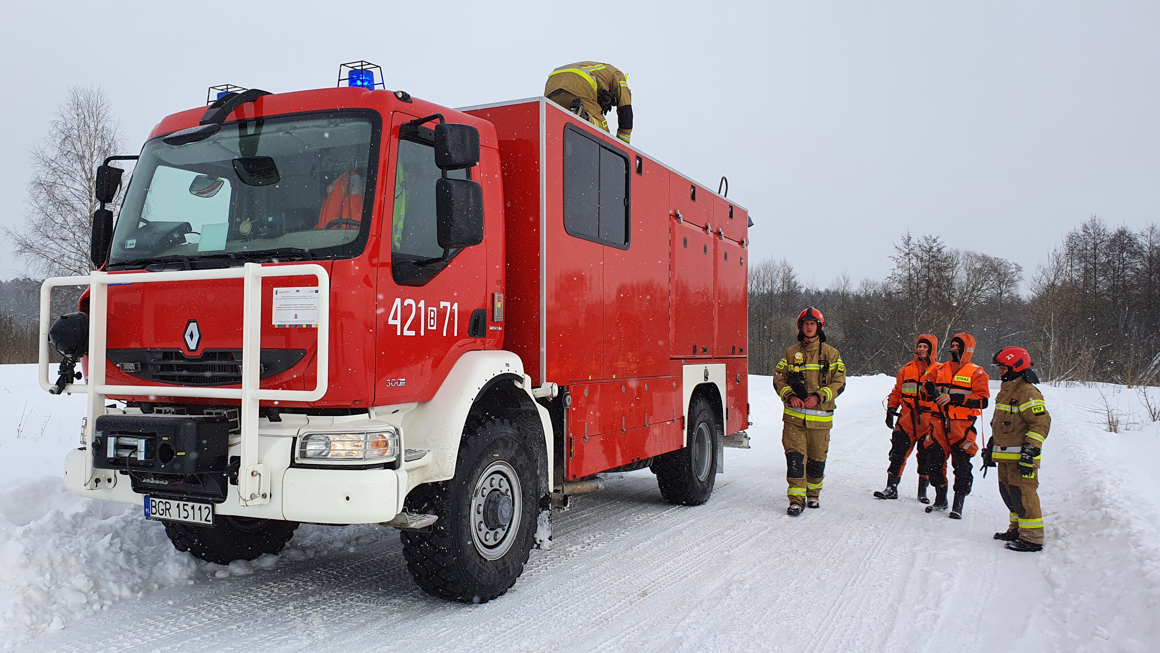 Dojazd do miejsca zdarzenia pojazdami pożarniczymi byłutrudniony ze względu na zaspy śnieżne. W celu dotarcia do jeziora strażacy zmuszeni byli pokonać pieszo odległość około 100 metrów brodząc w śniegu ze sprzętem ratowniczym. Po dotarciu we wskazane w zgłoszeniu miejsce, przy użyciu sań wodno-lodowych i niezbędnym zabezpieczeniu, ratownicyweszli na lód i zbliżyli się do poszkodowanego. W wyniku przeprowadzonego wywiadu ustalono, że mężczyzna doznałurazu prawego biodrapo uprzednim upadku.