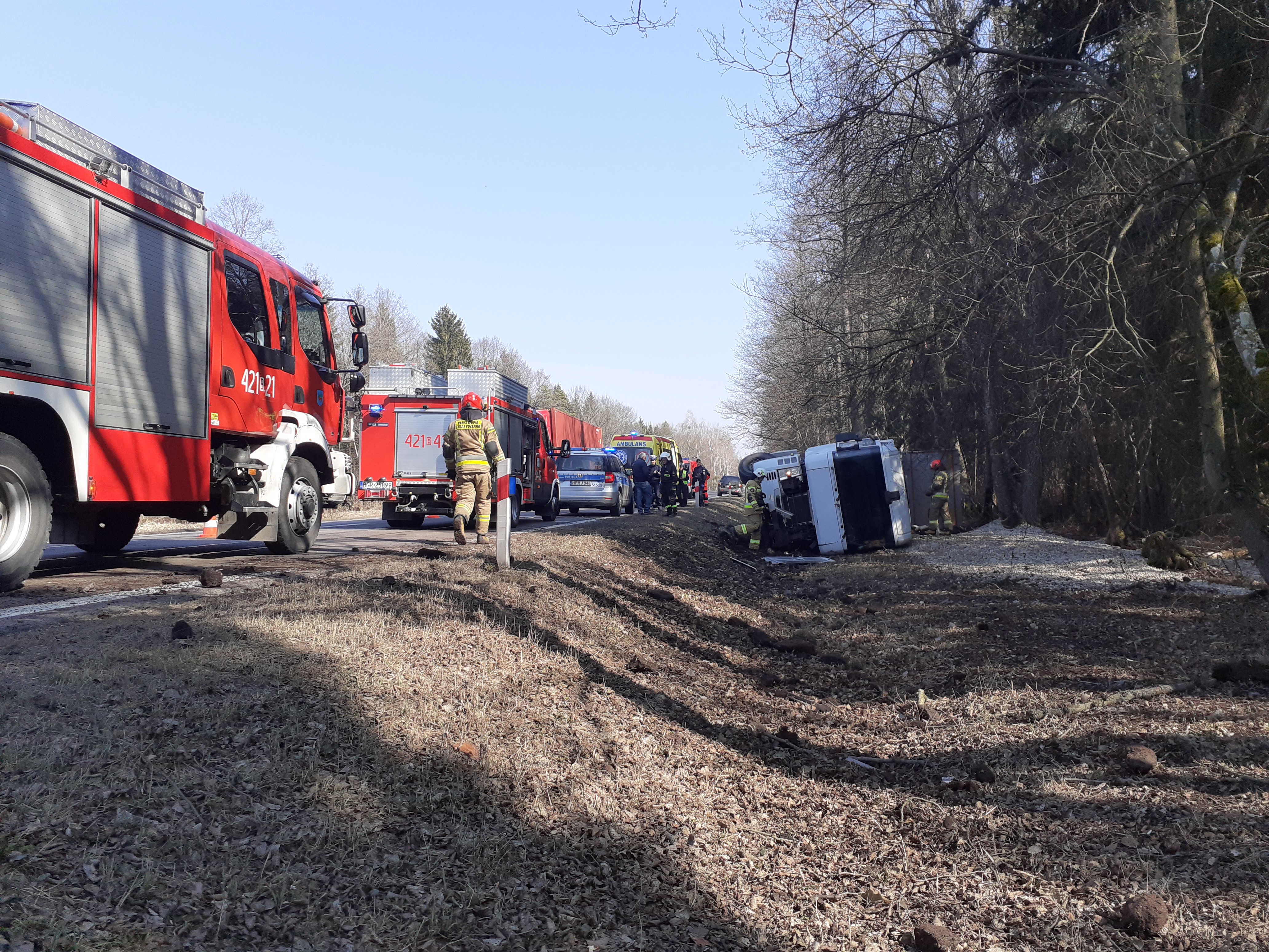W dniu 23.03.2022 r. o godz. 10.46 do SK KP PSP w Grajewie wpłynęło zgłoszenie, że na DK 61 w okolicy miejscowości Bełda samochód ciężarowy podczas jazdy zjechał z drogi i przewrócił się na bok do przydrożnego rowu. Po przyjeździe na miejsce zdarzenia pierwszych jednostek ochrony przeciwpożarowej i przeprowadzeniu rozpoznania okazało się, że kierowca znajduje się poza pojazdem, a ciężarówka poza jezdnią. Kierowca został przebadany na miejscu zdarzenia przez ratowników medycznych. Nie wymagał hospitalizacji.
