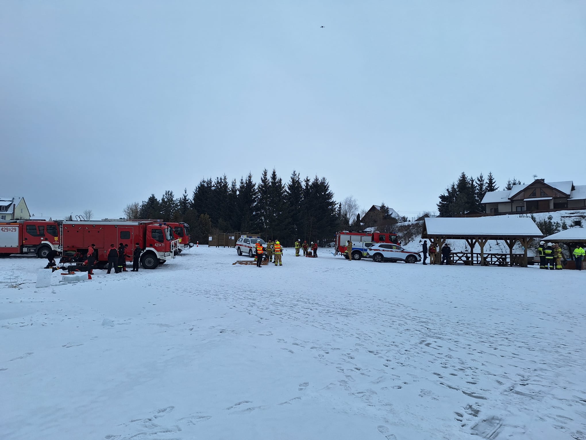18 stycznia br. strażacy z Jednostki Ratowniczo-Gaśniczej w Grajewie przy współudziale jednostek OSP z Gminy Rajgród oraz Policji realizowali ćwiczenia dowódczo-sztabowe o tematyce „Prowadzenie działań ratowniczych na lodzie i pod lodem”