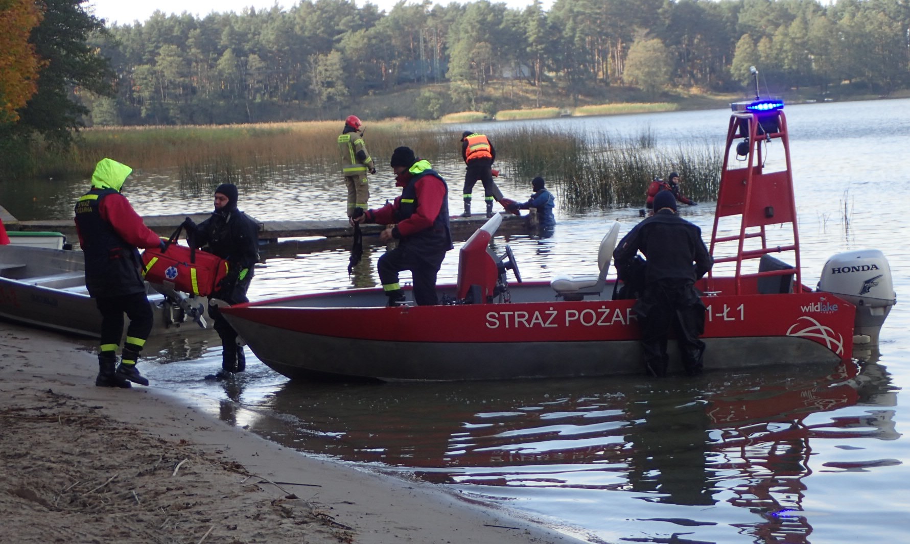 W scenariuszu do praktycznego rozwinięcia przyjęto kilka wariantów o różnym stopniu trudności. Pierwszy z nich zakładał wywrócenie się łodzi wiosłowej z kilkoma osobami na pokładzie oraz pożar łodzi motorowej na Jeziorze Rajgrodzkim. W wyniku tego zdarzenia 3 osoby zniknęły pod powierzchnią wody, a 2 ewakuowano na brzeg. Osoby znajdujące się pod wodą wydobyli strażacy nurkowie z Komend Powiatowych Państwowej Straży Pożarnej w Grajewie i Mońkach, natomiast osoby ranne w stanie hipotermii przetransportowali łodziami na brzeg ratownicy Wodnego Ochotniczego Pogotowia Ratunkowego i strażacy PSP. Poszkodowani zostali przekazani zespołom ratownictwa medycznego.