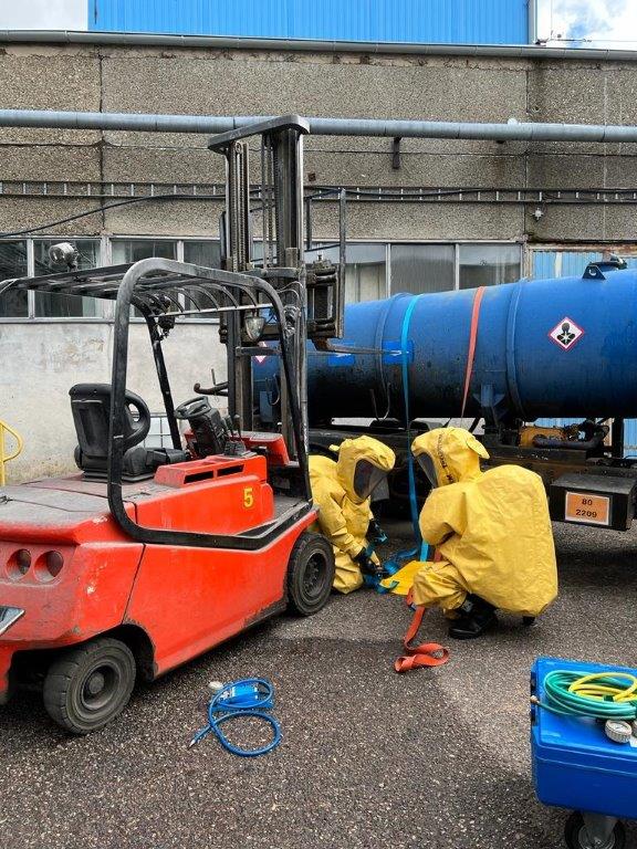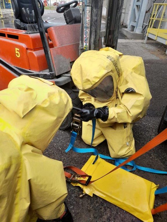 Ćwiczenia z ratownictwa chemicznego w zakładzie Pfleiderer Grajewo sp. z o.o.