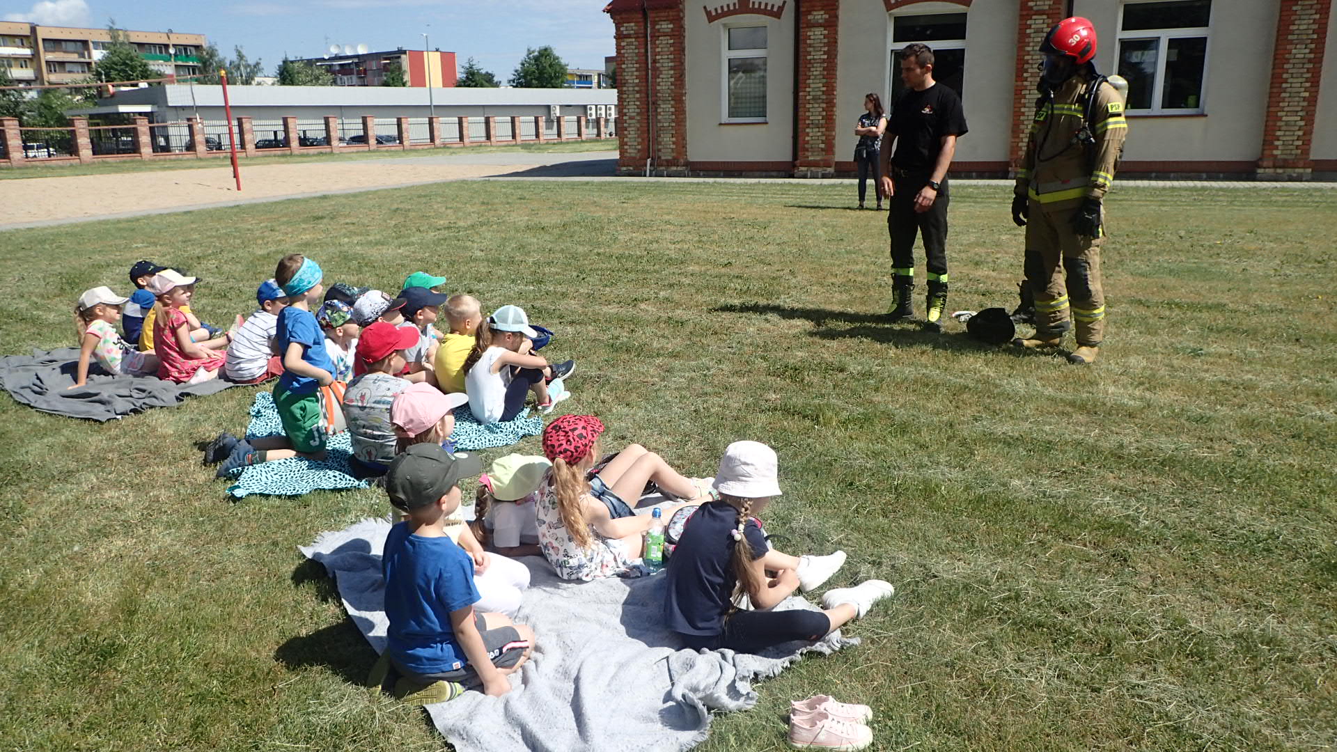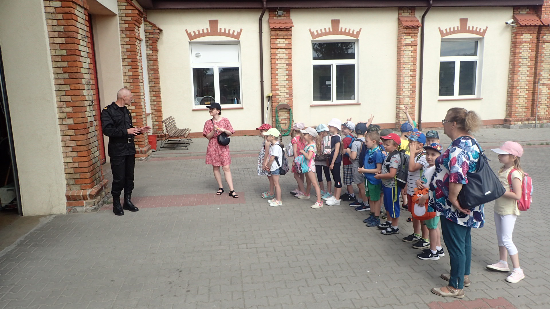 Wizyty w naszej komendzie były okazją nie tylko do zwiedzenia strażnicy i obejrzenia sprzętu ratowniczo-gaśniczego, ale również czynnego uczestnictwa w zajęciach edukacyjnych na świeżym powietrzu. W ramach spotkania ze strażakami dzieci zadawały pytania na temat występujących zagrożeń i służby w Państwowej Straży Pożarnej, na które uzyskiwały odpowiedź. Wszyscy chętni, którzy chcieli się poczuć przez chwilę prawdziwymi strażakami ubrali się w mundury i hełmy.