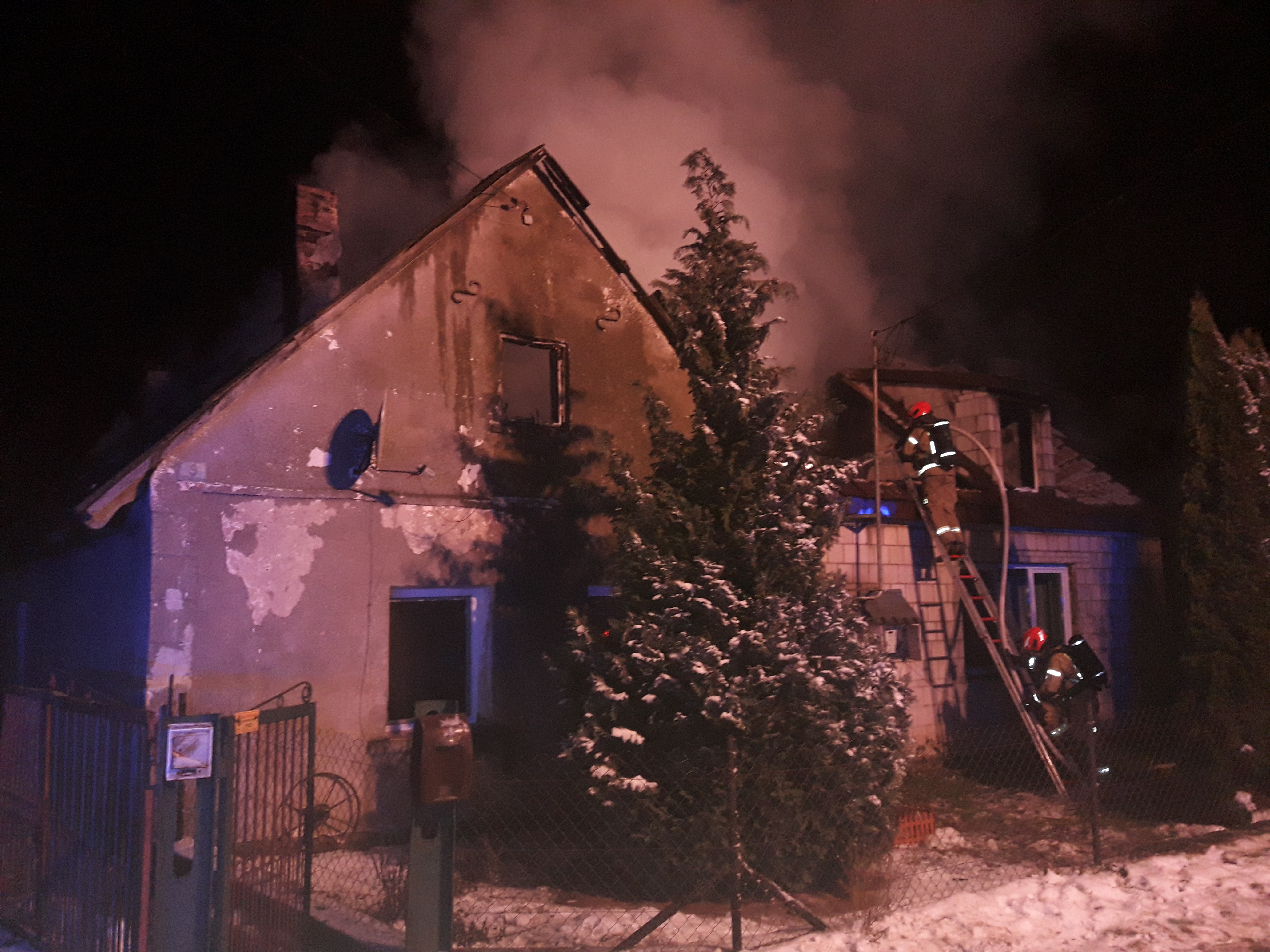 W dniu 27.01.2023 r. o godz. 2.26 do Stanowiska Kierowania PSP w Grajewie wpłynęło zgłoszenie o tym, że miejscowości Brzeźno, gmina Szczuczyn płonie dach domu jednorodzinnego. Po przyjeździe na miejsce zdarzenia i przeprowadzeniu rozpoznania ustalono, że pali się więźba dachowa budynku mieszkalnego. Mieszkańcy – 9 osób – w momencie przybycia na miejsce pierwszych zastępów jednostek ochrony przeciwpożarowej znajdowali się na zewnątrz budynku. Na szczęście nikt z nich nie odniósł obrażeń.