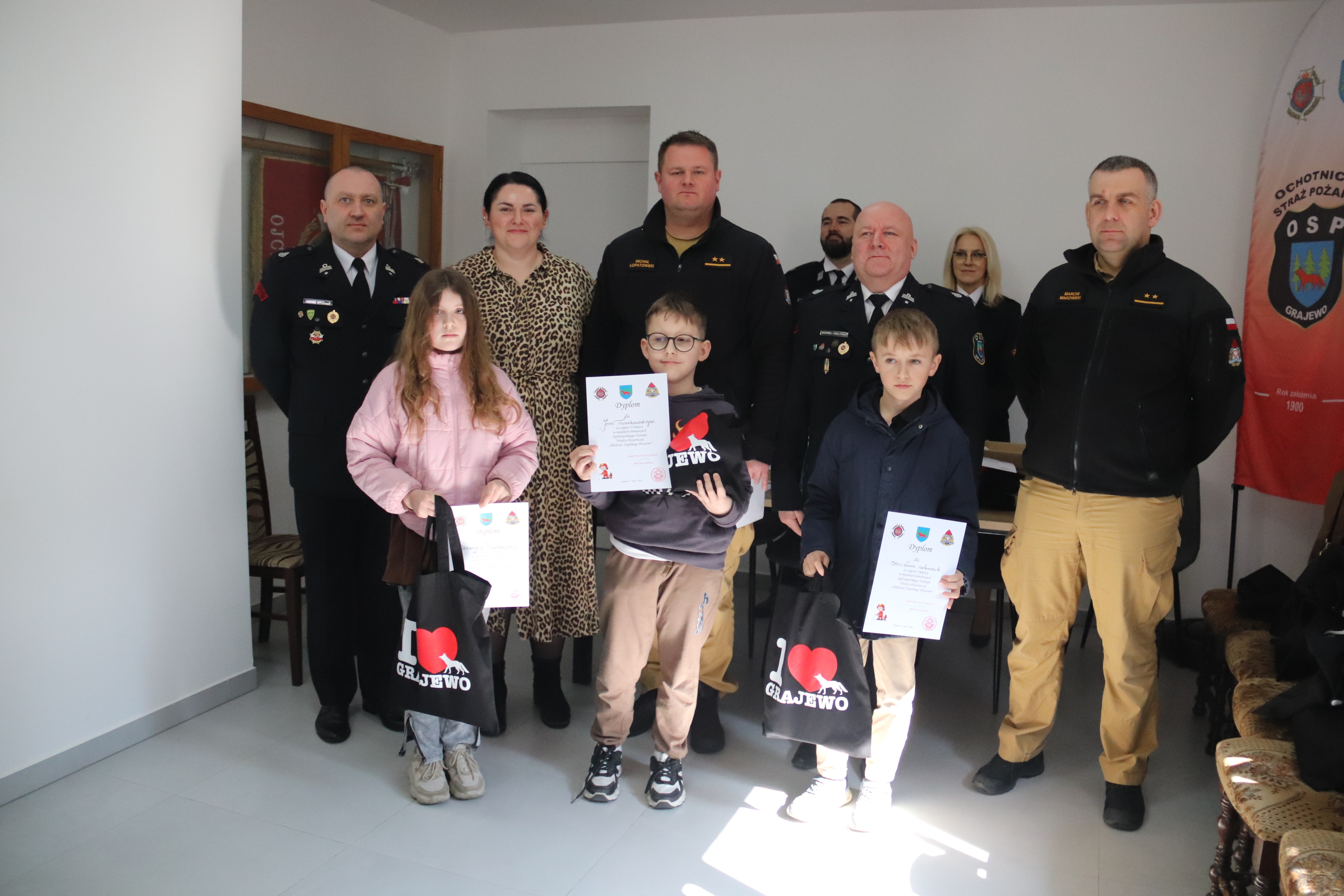 W dniu 27 marca 2026 r. w siedzibie Ochotniczej Straży Pożarnej w Grajewie (OSP Grajewo, ul. Przemysłowa 14) odbyły się miejskie eliminacje Ogólnopolskiego Turnieju Wiedzy Pożarniczej pt. „Młodzież Zapobiega Pożarom”.