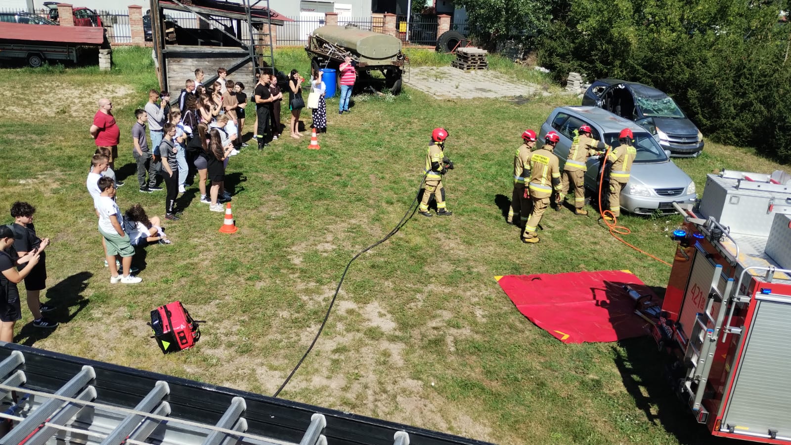 Podczas wizyty w tut. Jednostce Ratowniczo-Gaśniczej młodzież miała okazję zobaczyć jak funkcjonuje straż pożarna od momentu wpłynięcia zgłoszenia, poprzez alarmowanie i wyjazd wozów bojowych do zdarzenia. Poznali wyposażenie indywidualne strażaków oraz wyposażenie pojazdów pożarniczych. Zwieńczeniem wizyty był wyjazd alarmowy na plac ćwiczebny, pokaz ratownictwa technicznego oraz działań gaśniczych. Strażacy zaprezentowali techniki wykonania dostępu do poszkodowanych, sposoby ewakuacji poszkodowanych oraz kwalifikowaną pierwszą pomoc.