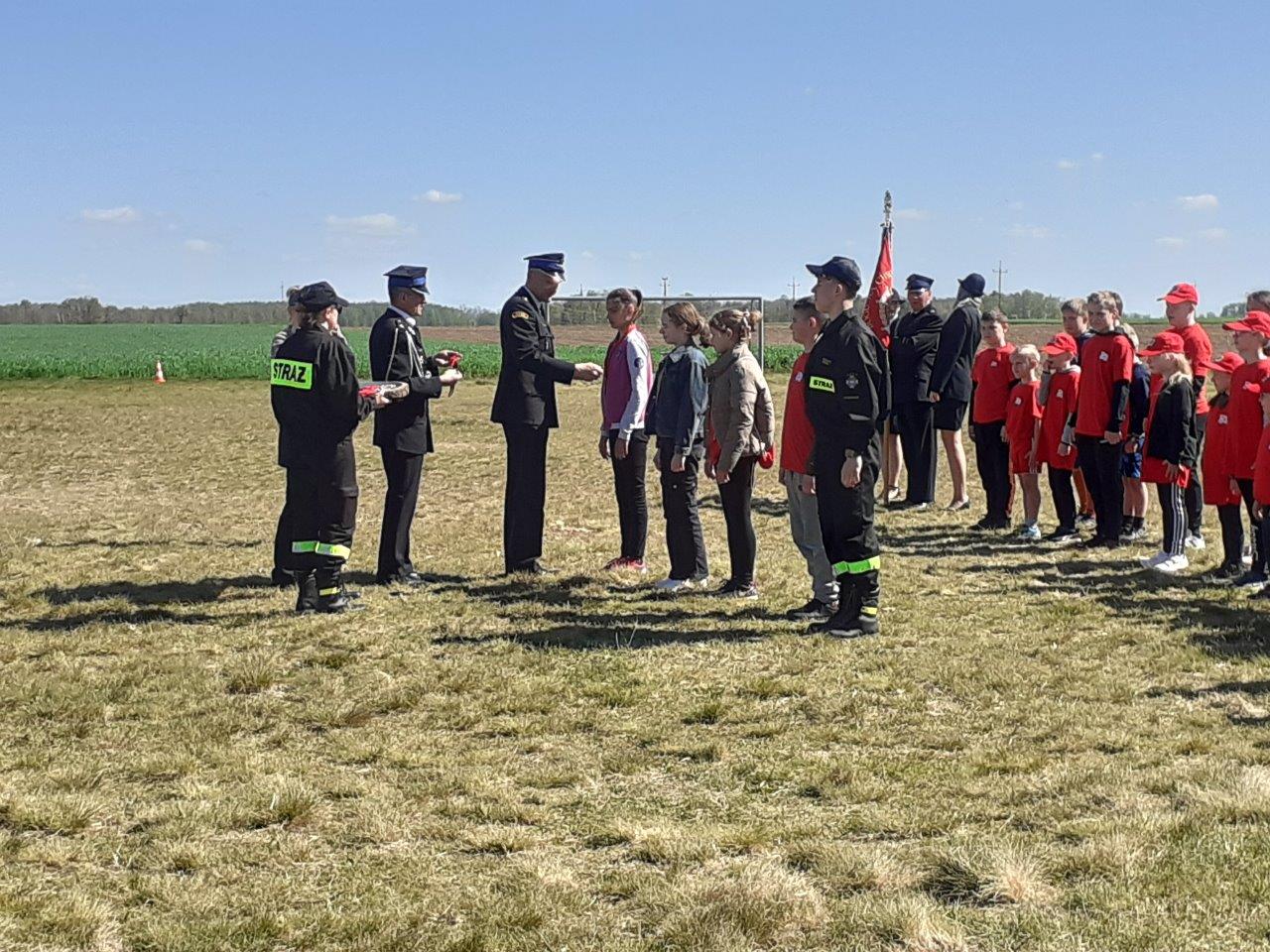Podczas nich nie zabrakło części oficjalnej składającej się z meldunku, ślubowania nowoprzyjętych członków Młodzieżowej Drużyny Pożarniczej oraz wyróżnień za udział w Ogólnopolskim Turnieju Wiedzy Pożarniczej. Pięknym akcentem było wręczenie podziękowania za 40-letnią służbę kierowcy OSP dla dh. Marka Milewskiego, na którego, co zauważyli uczestnicy uroczystości, zawsze można liczyć. Gratulujemy i życzymy wiele zadowolenia z następców.