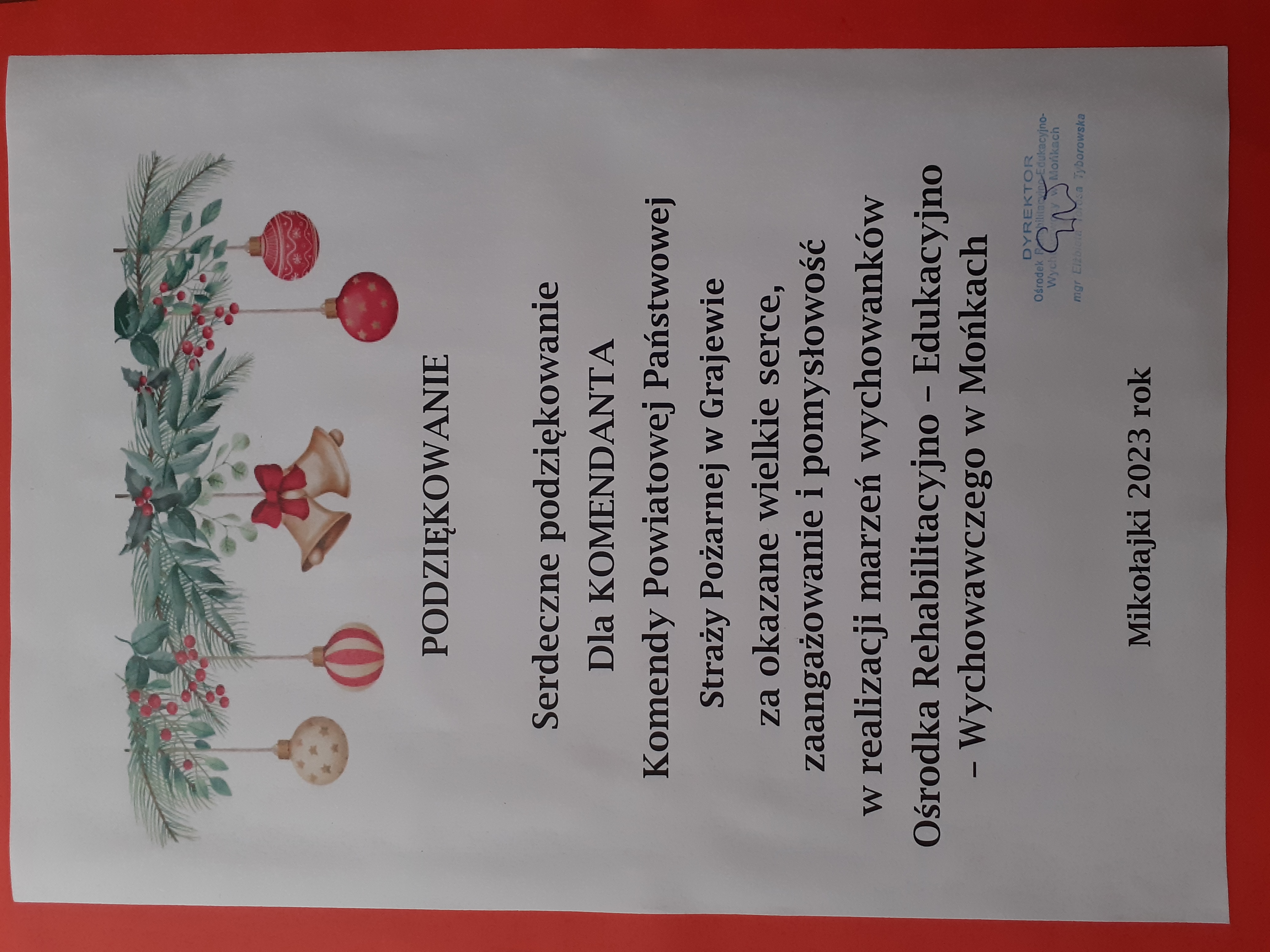 Podziękowania za akcję „Strażacki Mikołaj”