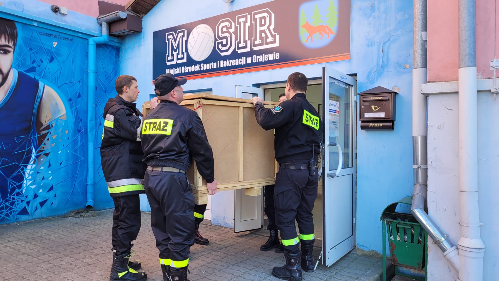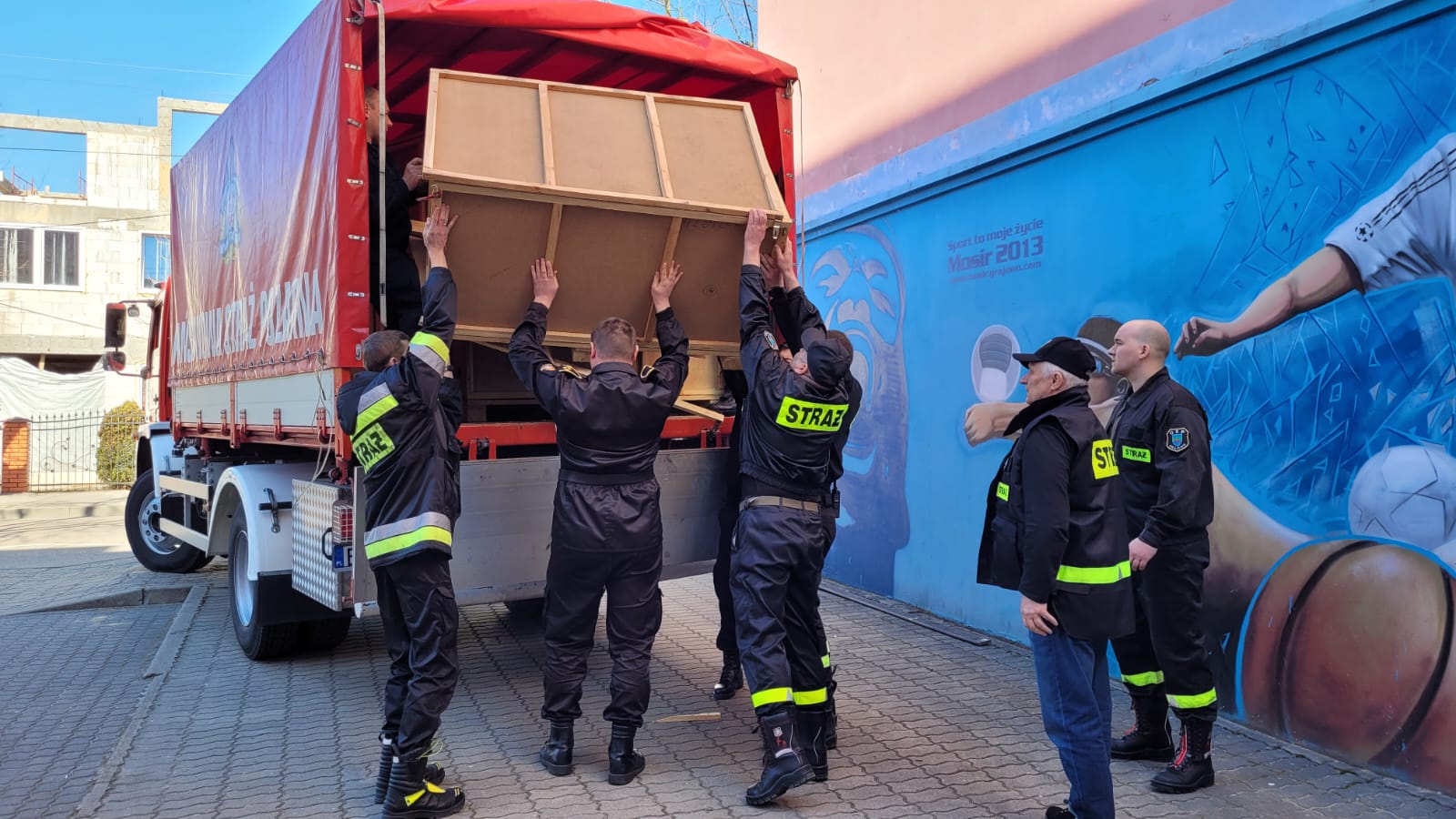 Strażacy z Komendy Powiatowej PSP w Grajewie oraz strażacy Ochotniczej Straży Pożarnej w Grajewie w dniu 22.03.2022 r. pomogli w rozładowaniu 100 szt. łóżek polowych oraz 100 szt. koców, które w związku z prośbą Starostwa Powiatowego w Grajewie zostały przywiezione z Rządowej Agencji Rezerw Strategicznych – składnica w Szepietowie.
