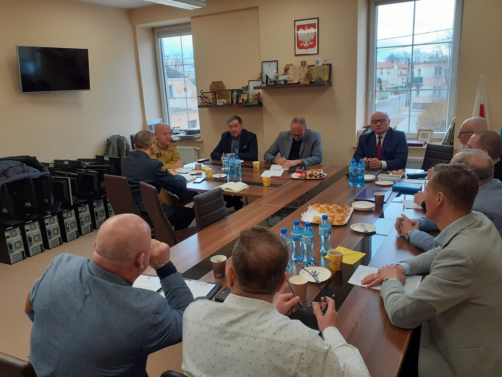 Dnia 31.03.2023 r. w Urzędzie Miejskim w Szczuczynie odbyło się posiedzenie Zarządu Powiatowego ZOSP RP w Grajewie na którym obecny był Zastępca Podlaskiego Komendanta Wojewódzkiego bryg. Marcin Bielakowicz. Komendant Powiatowy st. kpt. Jarosław Szeszko oraz Prezes Zarządu Powiatowego dh. Artur Kuczyński podsumowali zebrania sprawozdawcze OSP z terenu powiatu grajewskiego. W dalszej części spotkania ustalono i omówiono terminarz zawodów sportowo-pożarniczych OSP oraz MDP, OTWP „Młodzież Zapobiega Pożarom”, obchodów Dni Strażaka, pielgrzymki strażaków na Jasną Górę oraz planowanych szkoleń druhów OSP z terenu powiatu grajewskiego na 2023 rok.