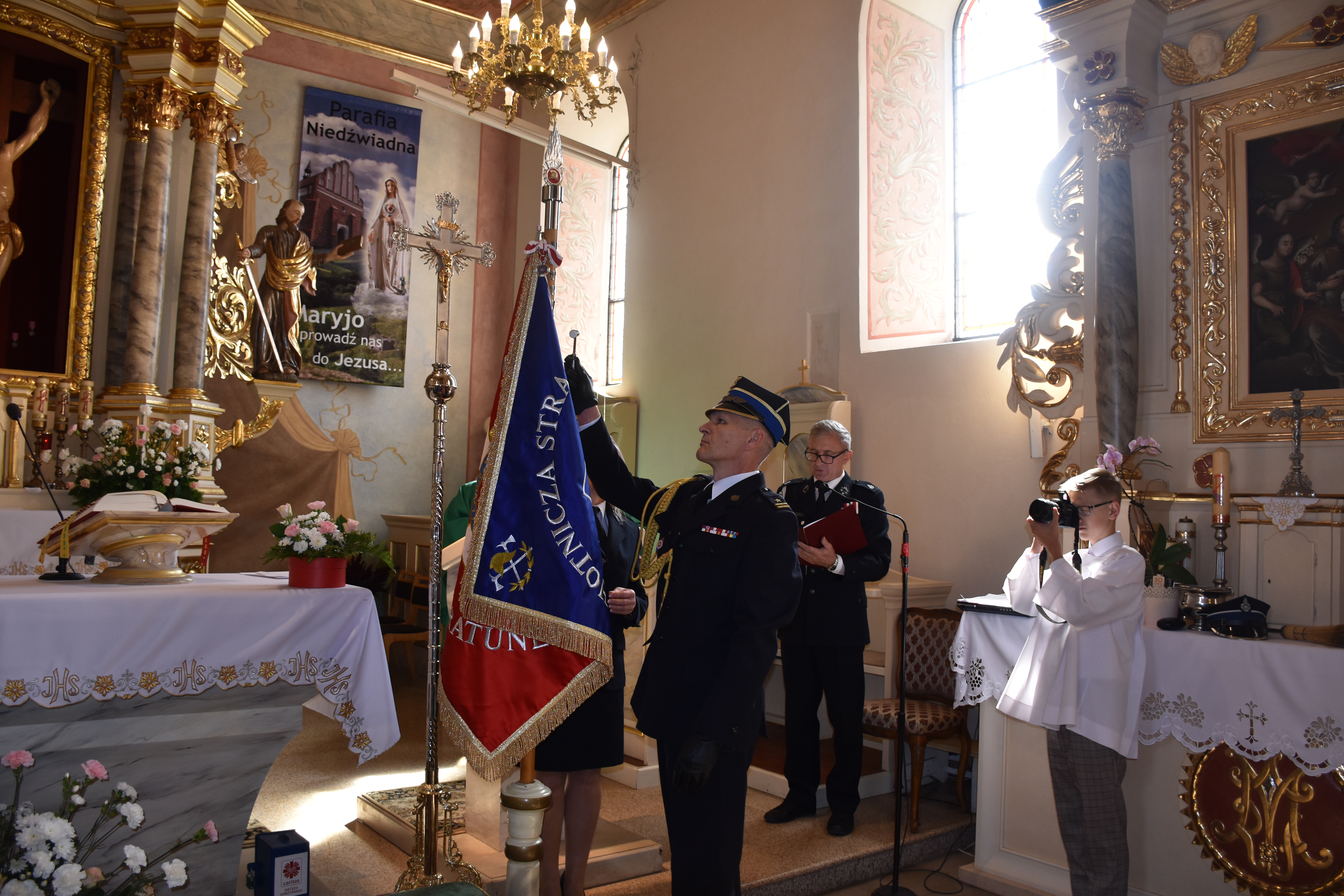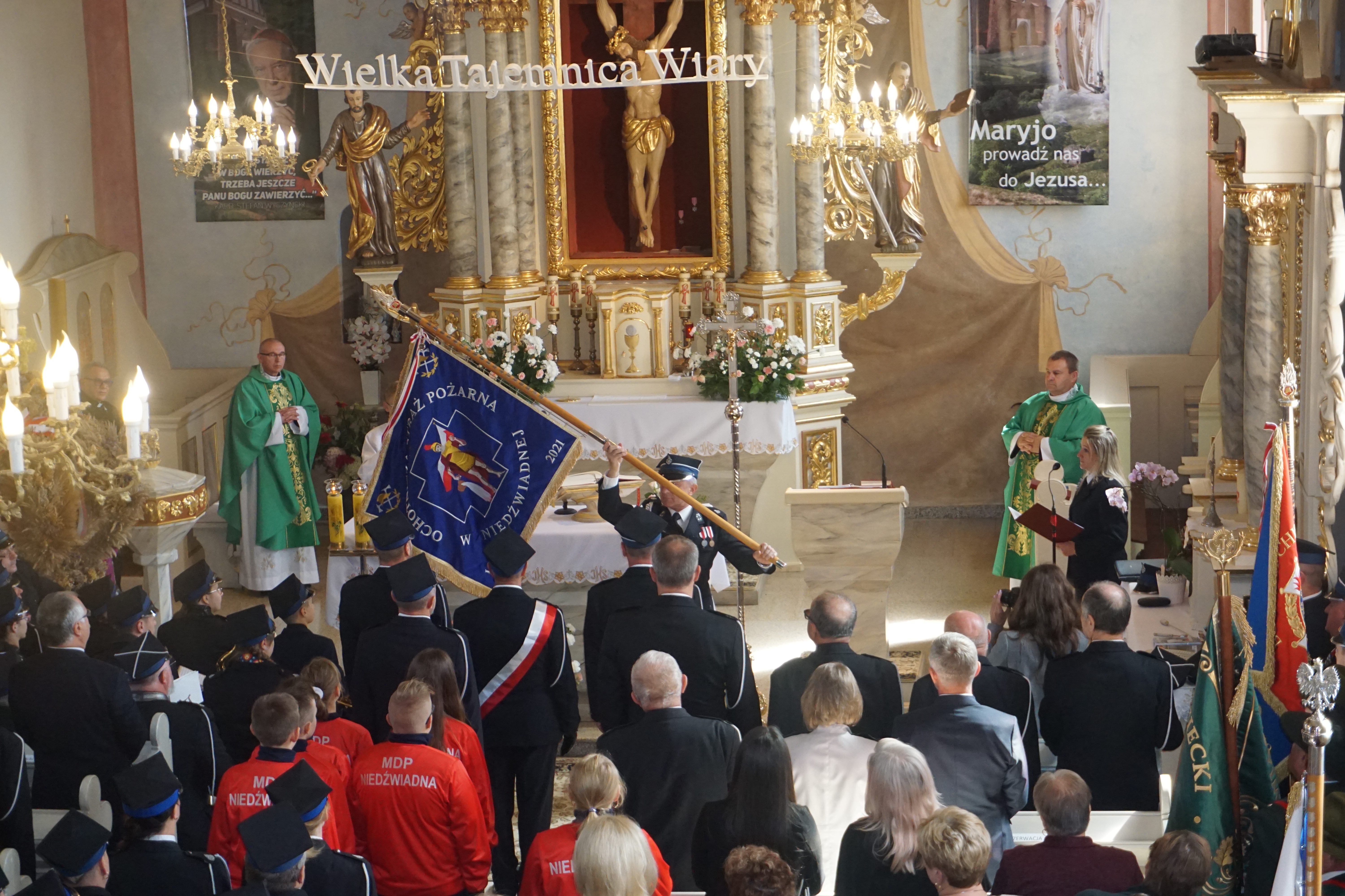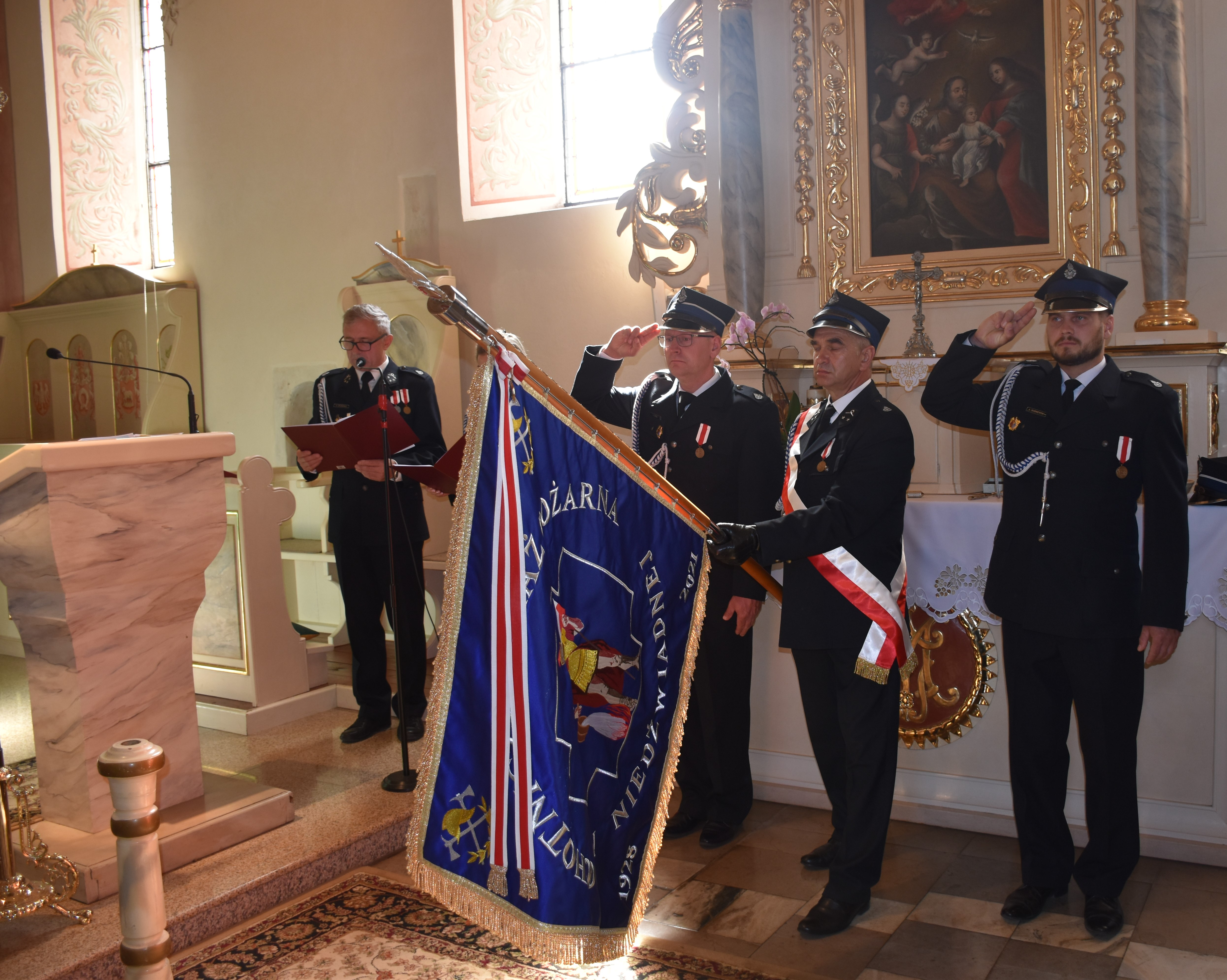 Poświęcenie odnowionego sztandaru jednostki OSP w Niedźwiadnej