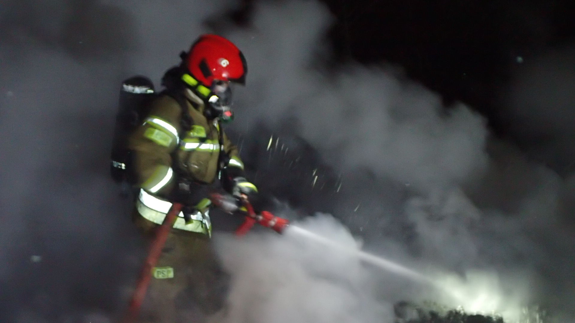 Pierwszy zastęp Państwowej Straży Pożarnej z Grajewa pojawił się na miejscu zdarzenia po kilku minutach. Kierujący Działaniem Ratowniczym ustalił, że pali się drewniana altana kryta blachą, pod którą znajdowała się m.in. przyczepa samochodowa i drobny sprzęt codziennego użytku. Poza tym pod wiatą znajdowała się nadpalona turystyczna butla turystyczna, z której ulatniał się gaz.