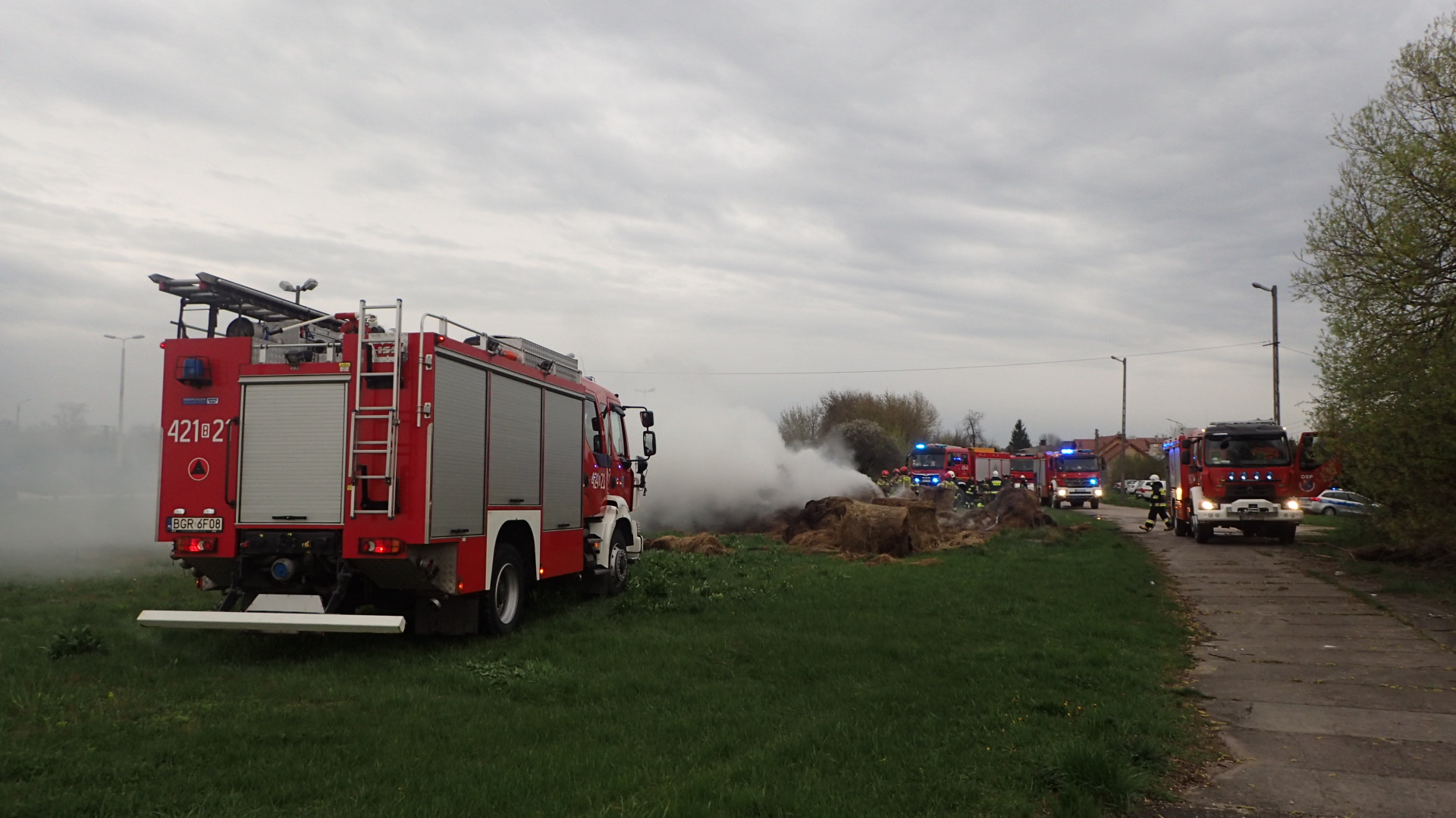 W chwili przyjazdu na miejsce pierwszych jednostek ochrony przeciwpożarowej, pożarem objęta była sterta siana w belach o powierzchni około 280 metrów kwadratowych. Z informacji uzyskanych od właściciela wynikało, że sterta składa się z niemal 90 bel.