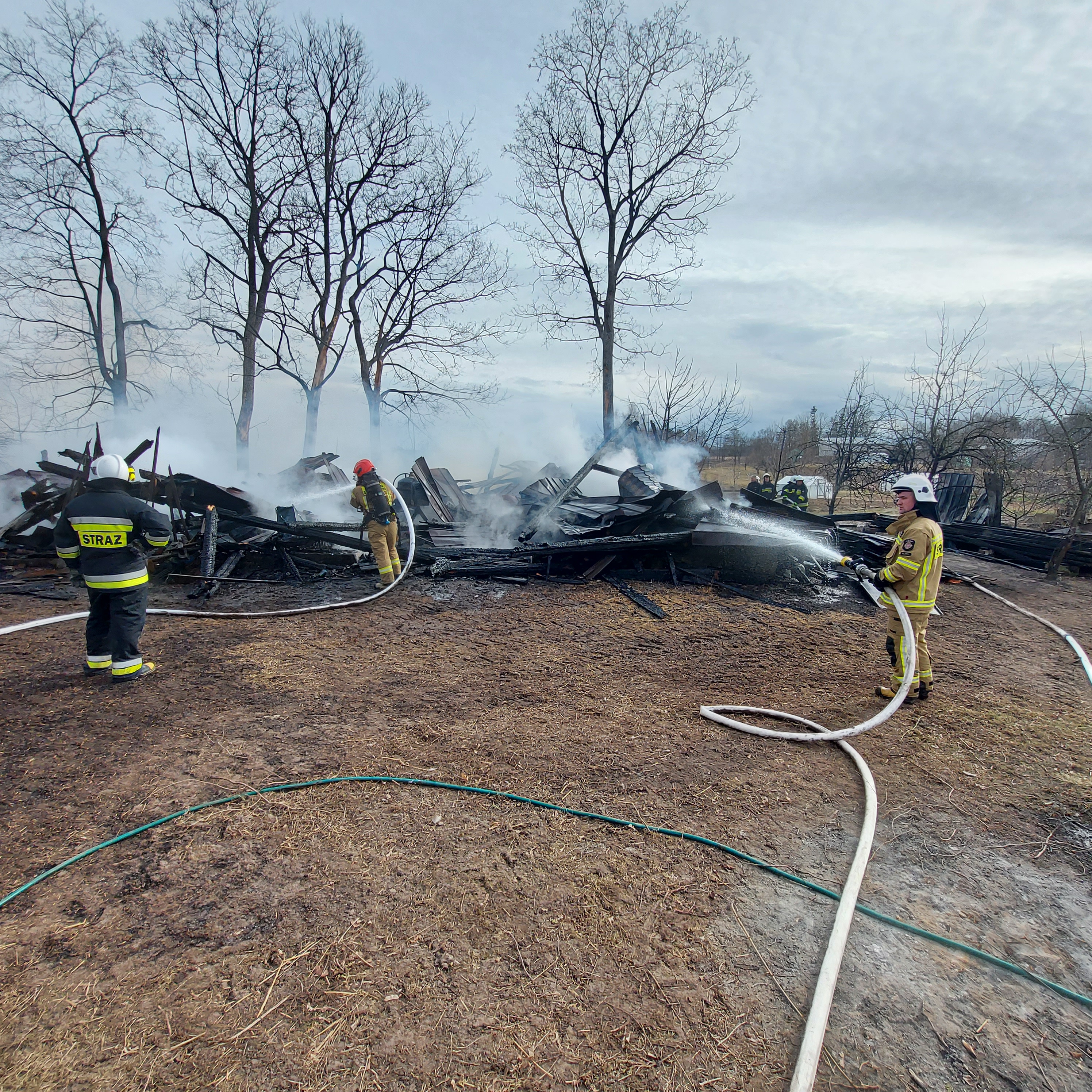 Po dojeździe na miejsce pierwszych jednostek ochrony przeciwpożarowej okazało się, że budynek całkowicie objęty jest pożarem. Rozwojowi pożaru sprzyjał wiatr który spowodował przeniesienie się ognia na sąsiednią działkę, okoliczną łąkę, trzcinę oraz maszyny rolnicze. Z całą pewnością można stwierdzić, że gdyby nie sprawne działanie strażaków straty byłyby większe.