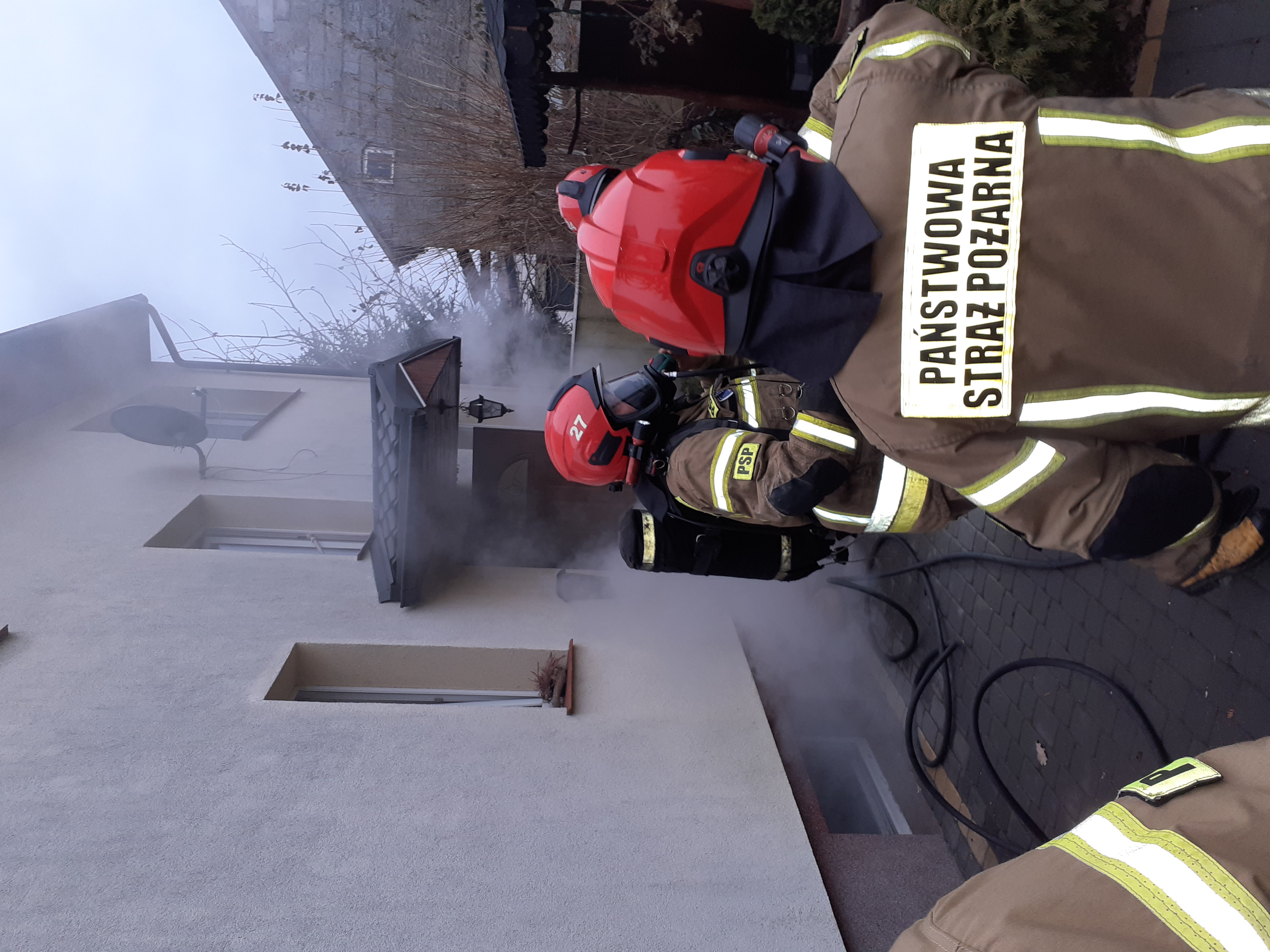 W chwili przyjazdu na miejsce zdarzenia pierwszych zastępów PSP widać było dym wydobywający się przez otwory okienne pomieszczeń począwszy od piwnicy, na poddaszu kończąc. Ustalono również, że dziecko, o którym była mowa w zgłoszeniu znajdowało się pod opieką osoby dorosłej w samochodzie osobowym zaparkowanym nieopodal budynku. Obecna na miejscu właścicielka posesji poinformowała strażaków, że wewnątrz budynku nie ma nikogo.