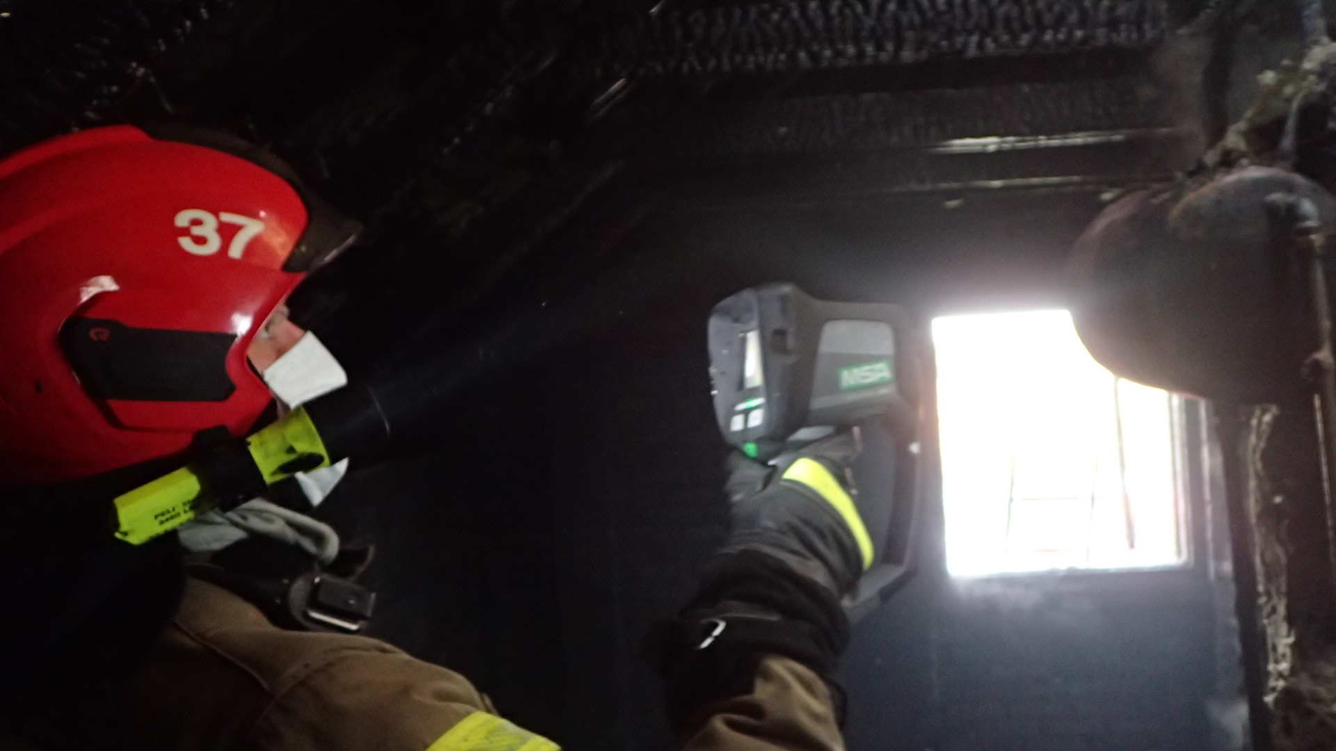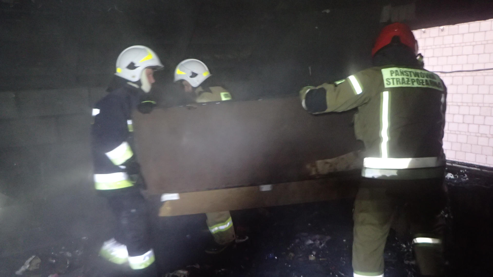 W początkowej fazie działań wprowadzono do budynku 2 roty gaśnicze w aparatach ochrony dróg oddechowych i pełnym zabezpieczeniu w celu szybkiego i skutecznego podjęcia działań ratowniczych. Równocześnie z podawaniem prądów gaśniczych wody strażacy przeszukali wszystkie pomieszczenia, w których nie odnaleźli innych osób. Po dojeździe na miejsce kolejnych jednostek PSP i OSP podano dodatkowo dwa prądy wody w natarciu na palące się poddasze i dach budynku oraz ewakuowano z budynku zagrożone mienie. Do pracy na wysokości wykorzystano drabiny strażackie i podnośnik hydrauliczny, z którego m.in. prowadzono prace rozbiórkowe i działania gaśnicze. Przy użyciu kamery termowizyjnej sprawdzono wszystkie miejsca, w których mogły wystąpić ukryte źródła ognia, a detektorem wielogazowym dokonano pomiaru stężeń substancji niebezpiecznych dla życia i zdrowia ludzi.