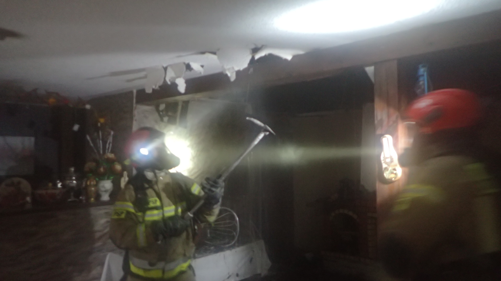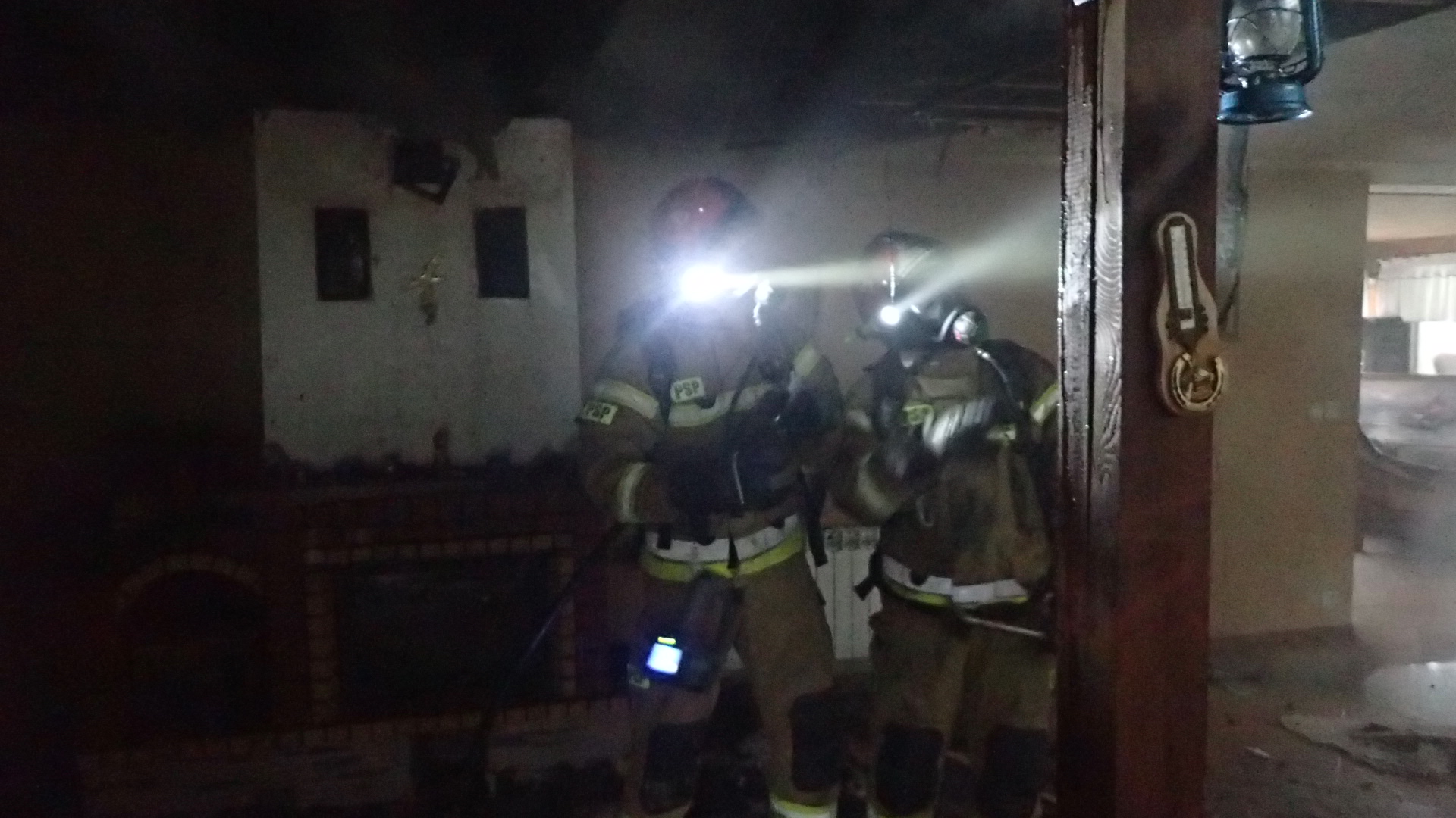 Działania 6 zastępów Państwowej Straży Pożarnej z Grajewa oraz jednostek Ochotniczych Straży Pożarnych z Rajgrodu i Woźnejwsi polegały na wprowadzeniu do palących się pomieszczeń dwóch prądów gaśniczych wody – jednego z poziomu parteru, a drugiego z poziomu poddasza. Po ugaszeniu pożaru i przewietrzeniu budynku przystąpiono do prac rozbiórkowych konstrukcji budowlanej oraz usuwania na zewnątrz spalonych elementów wyposażenia i sprawdzeniu kamerami termowizyjnymi wszystkich obszarów, w których mogły występować ukryte źródła ognia i podwyższona temperatura. Po upewnieniu się, że nie ma zagrożenia pożarowego i innych zagrożeń dla życia i zdrowia ludzi działania zakończono.