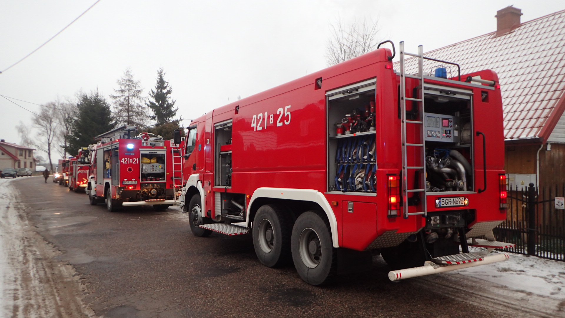 10 grudnia 2021 roku o godzinie 8:25 dyżurny stanowiska kierowania komendanta powiatowego Państwowej Straży Pożarnej w Grajewie otrzymał zgłoszenie z Wojewódzkiego Centrum Powiadamiania Ratunkowego w Białymstoku o pożarze budynku mieszkalno-usługowego w miejscowości Woźnawieś gm. Rajgród.