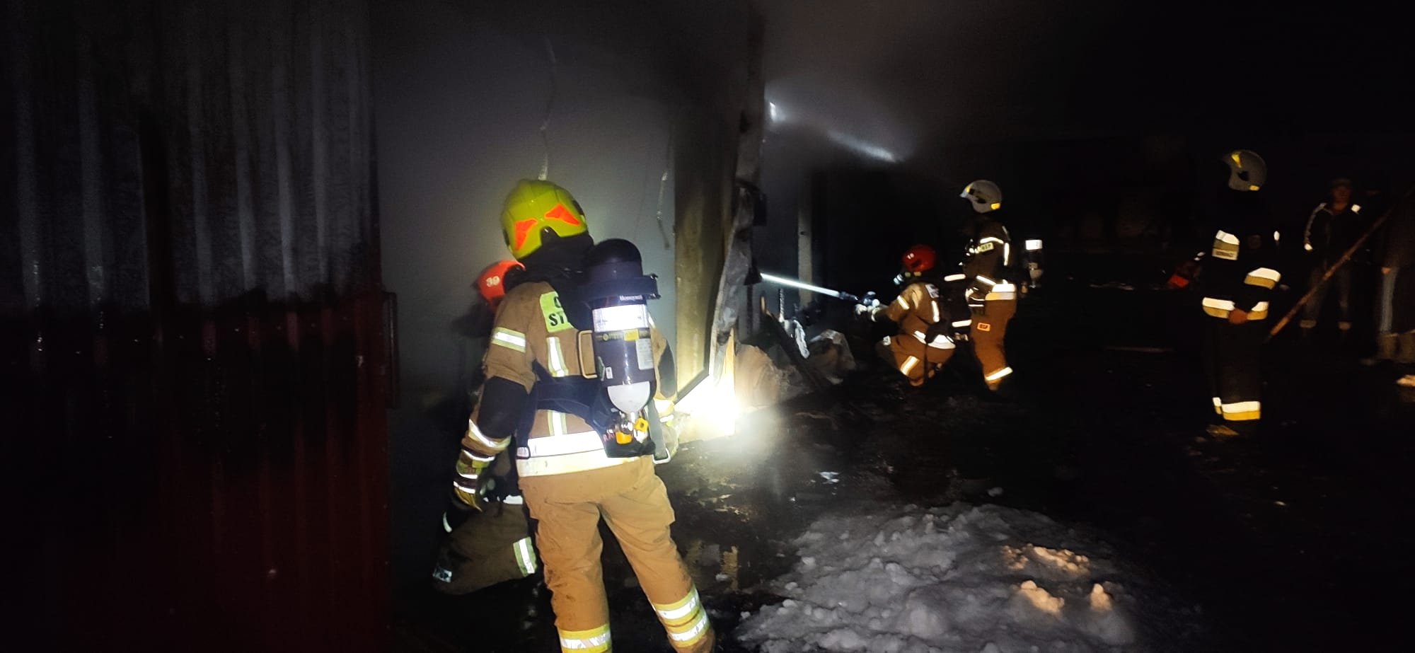 Po opanowaniu pożaru, oddymiono cały kompleks budynków oraz sprawdzono pogorzelisko kamerą termowizyjną czy nie występują ukryte zarzewia ognia.