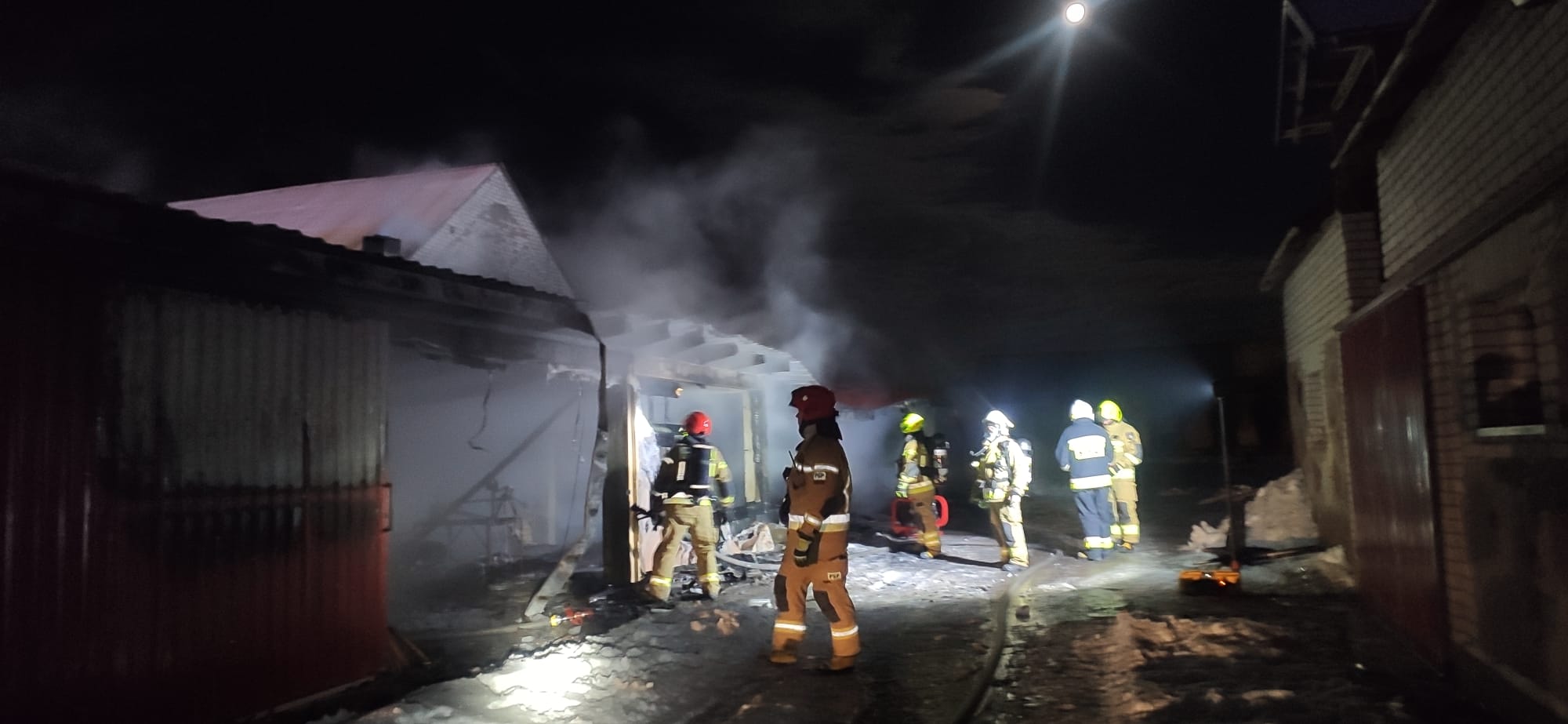W dniu 4 lutego o godzinie 4:38 do Stanowiska Kierowania Komendanta Powiatowego PSP w Grajewie wpłynęło zgłoszenie o pożarze budynku gospodarczego, murowanego, krytego blachą w miejscowości Klimaszewnica Gmina Radziłów. Ze zgłoszenia wynikało, że budynek objęty pożarem znajduje się w pobliżu domu mieszkalnego. Na miejsce zadysponowano strażaków z Jednostki Ratowniczo-Gaśniczej w Grajewie oraz wszystkie jednostki Ochotniczej Straży Pożarnej z Gminy Radziłów. Dodatkowo na miejsce skierowano zastęp OSP Białaszewo z sąsiedniej gminy. Po przybyciu na miejsce pierwszego dowódcy potwierdzono, że pożarem objętych jest około połowa ciągu budynków gospodarczych o długości 50m. Budynki były wykorzystywane jako garaże, warsztat oraz stolarnia. W trakcie wybuchu pożaru nikt nie przebywał w środku, nikt nie wymagał pomocy medycznej. Do pożaru doszło w pomieszczeniu stolarni, a zadymieniu uległ cały kompleks budynków. Działania przybyłych zastępów polegały na zabezpieczeniu miejsca zdarzenia, odłączeniu prądu, oświetleniu terenu akcji. Następnie trzy roty w aparatach ochrony dróg oddechowych podały dwa prądy wody na ognisko pożaru oraz jeden prąd wody w obronie na nieobjęte pożarem części budynku.