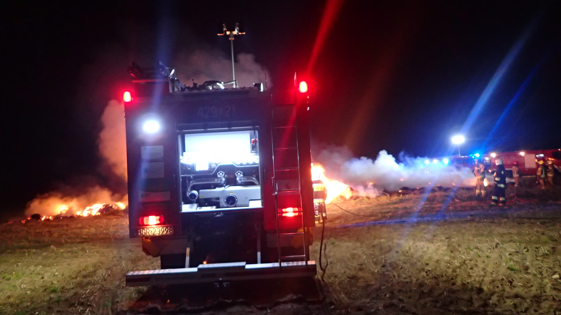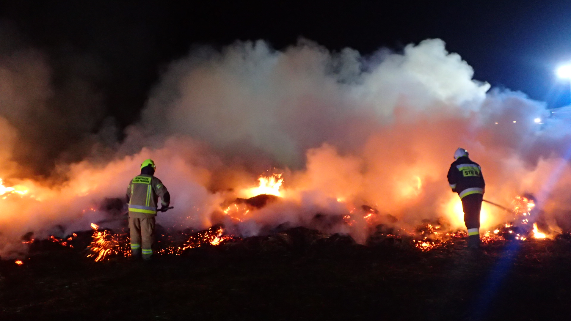 Działania 8 zastępów ratowniczo-gaśniczych i 23 strażaków polegały na zabezpieczeniu i oświetleniu miejsca zdarzenia oraz podaniu 3 prądów gaśniczych wody na palącą się stertę belowanej słomy składowanej w ilości około 200 sztuk. W działaniach wykorzystano ładowacz teleskopowy, przy użyciu którego rozkładano bele i dogaszano. Akcję gaśniczą zakończono w dniu 17 października 2021 roku o godzinie 11:20 po ponad 17 godzinach działań.