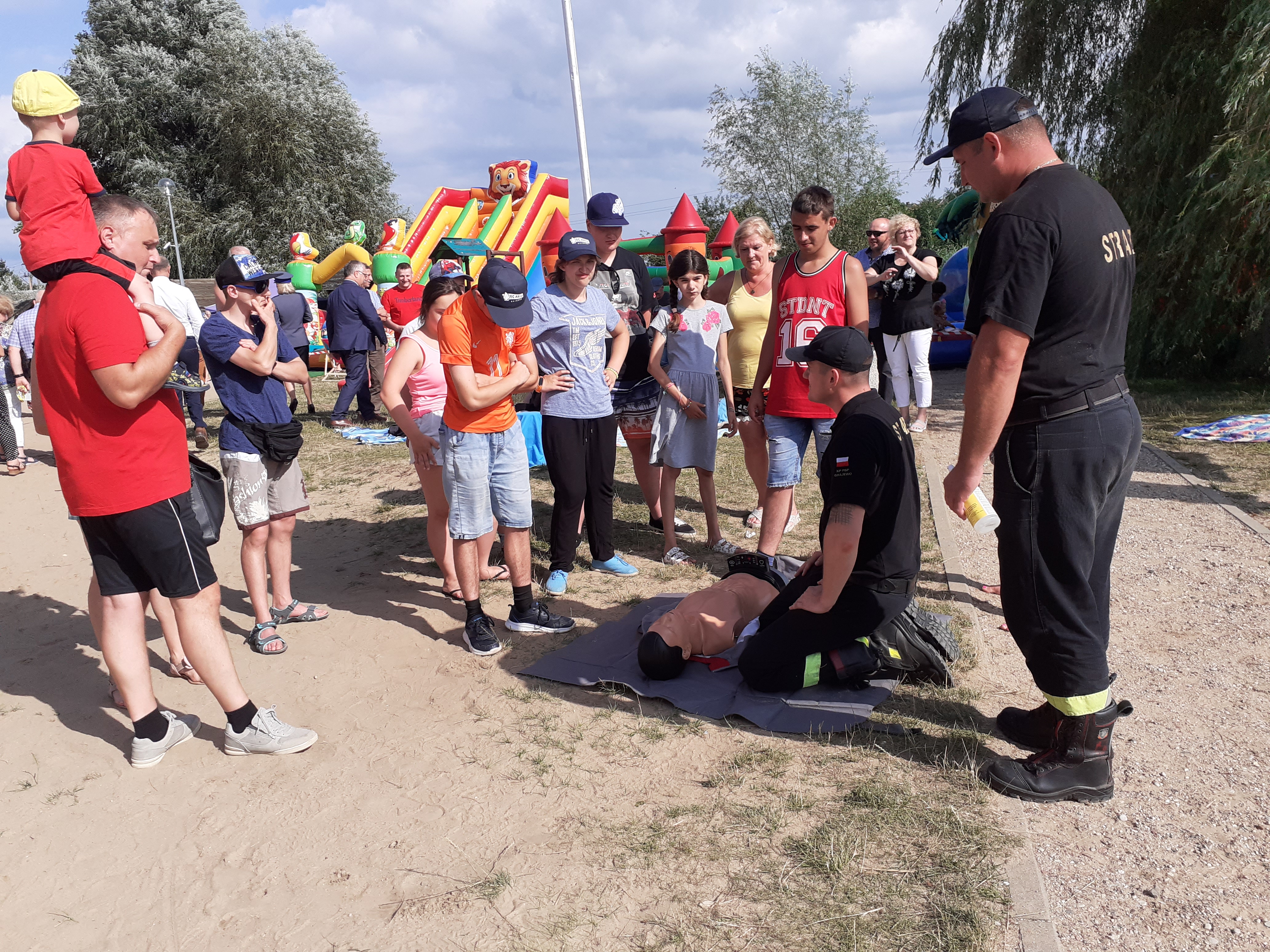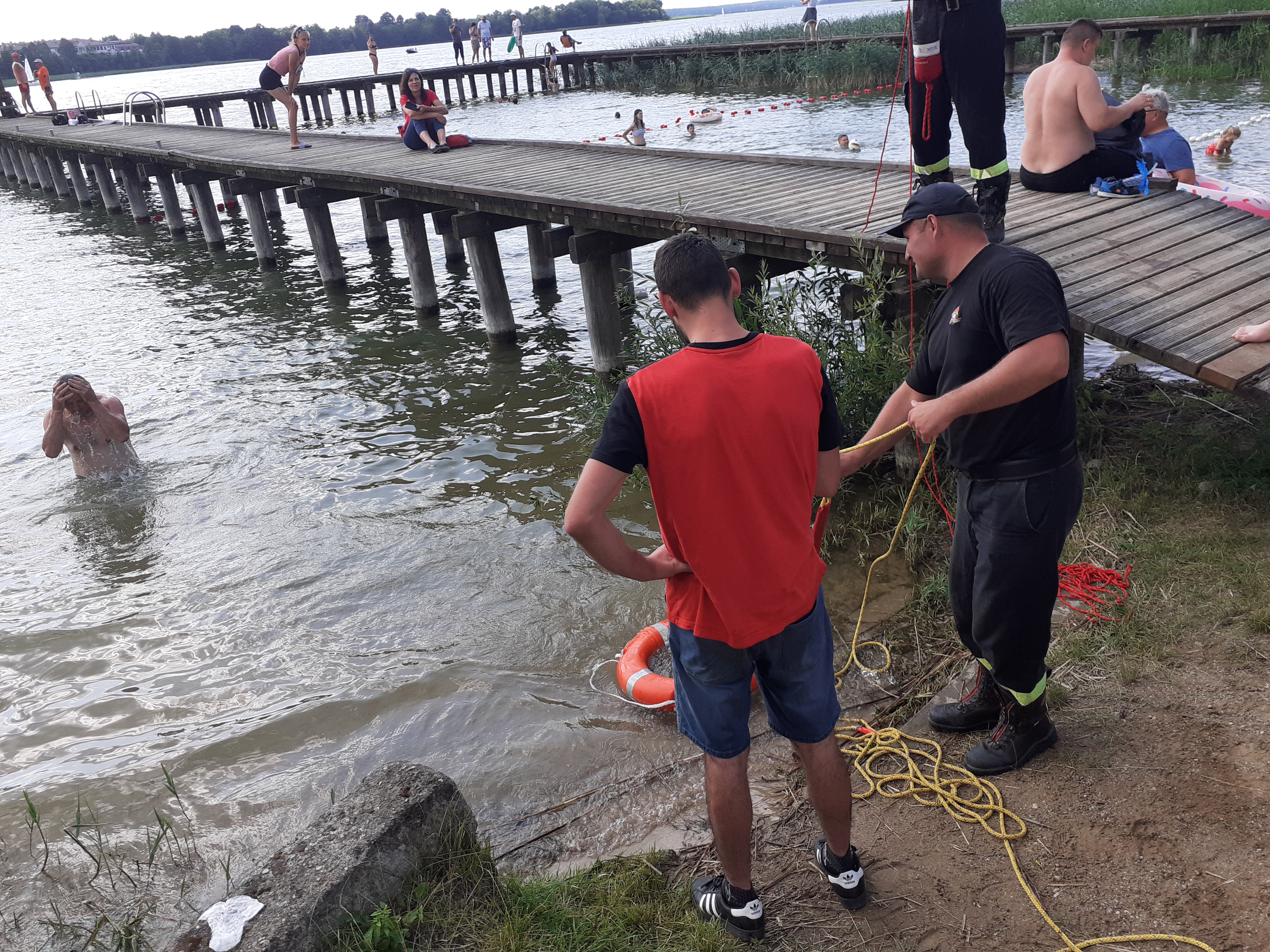 W ramach kampanii „Kręci mnie bezpieczeństwo nad wodą” strażacy zorganizowali pokazy ratownictwa wodnego i omówili zasady udzielania pierwszej pomocy. Aby dotrzeć do jak największej liczby odbiorców i w sposób realny zaprezentować techniki działań ratowniczych z wykorzystaniem m.in. koła ratunkowego i rzutki oraz fantomów, pokazy odbyły się na plaży miejskiej w Rajgrodzie.