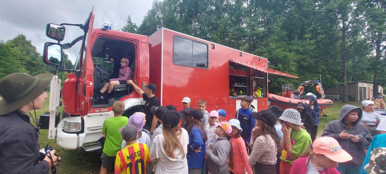 na terenie bazy harcerskiej „Orle Gniazdo” w Rajgrodzie odbyły się oraz trwają obozy harcerskie. Obozy harcerskie szczególnie te w lasach są narażone na różnego rodzaju niebezpieczeństwa w tym silne burze oraz wiatrołomy. Strażacy z KP PSP w Grajewie przy okazji rozpoczęcia każdego turnusu wypoczynku spotykają się z młodzieżą aby poruszyć temat ich bezpieczeństwa.
