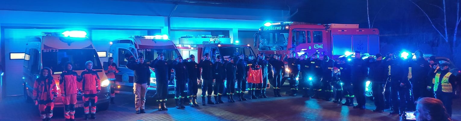27 stycznia 2025 roku o godzinie 17:00 na placu Stacji Pogotowia Ratunkowego w Grajewie funkcjonariusze Komendy Powiatowej PSP w Grajewie, Komendy Powiatowej Policji w Grajewie, ratownicy Wojewódzkiej Stacji Pogotowia Ratunkowego w Łomży filia w Grajewie oraz druhowie Ochotniczej Straży Pożarnej w Grajewie oddali hołd ratownikowi medycznemu z Siedlec, tragicznie zmarłemu podczas wykonywania swoich obowiązków służbowych.