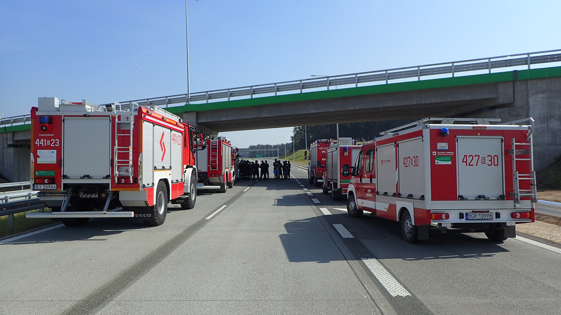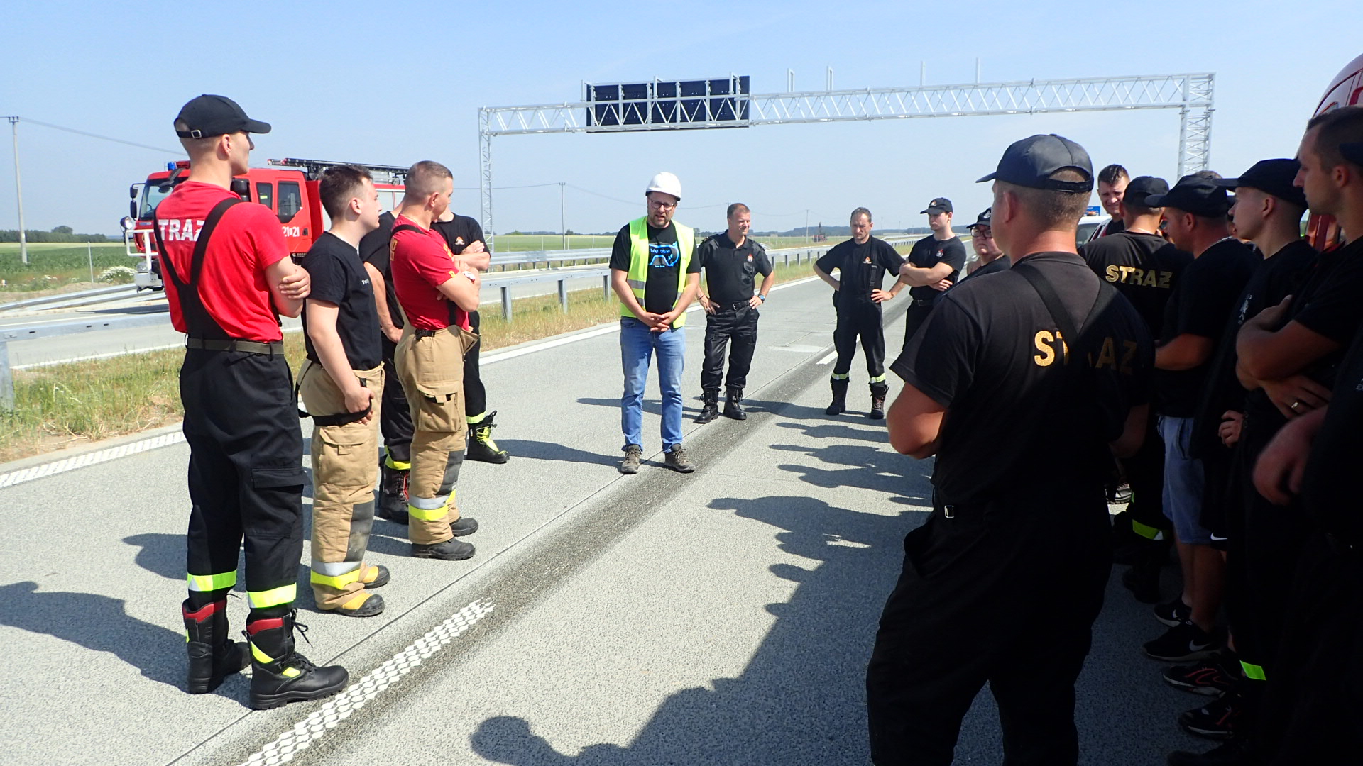 Kilkudniowe szkolenie dla każdej ze zmian służbowych przeprowadził pracownik firmy Budimex realizującej zadanie na odcinku Stawiski-Szczuczyn. Strażacy zapoznali się m.in. z rozmieszczeniem hydrantów w rejonie przejazdów awaryjnych i Miejscach Obsługi Podróżnych (MOP) oraz usytuowaniem barier ochronnych łatwo rozbieralnych.