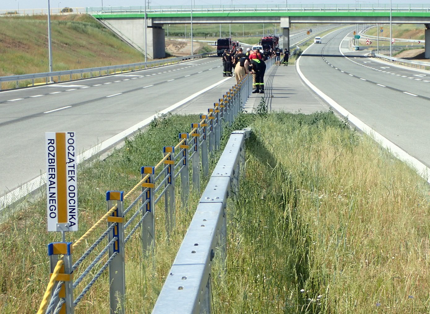 Po części teoretycznej przystąpiono do praktycznego demontażu stalowych lin wzdłuż przejazdów awaryjnych na potrzeby akcji ratowniczej. Jak przyznali uczestnicy szkolenia zdobyta wiedza w znaczący sposób wpłynie na szybkość i skuteczność prowadzonych działań w przypadku zdarzeń z udziałem środków transportu.