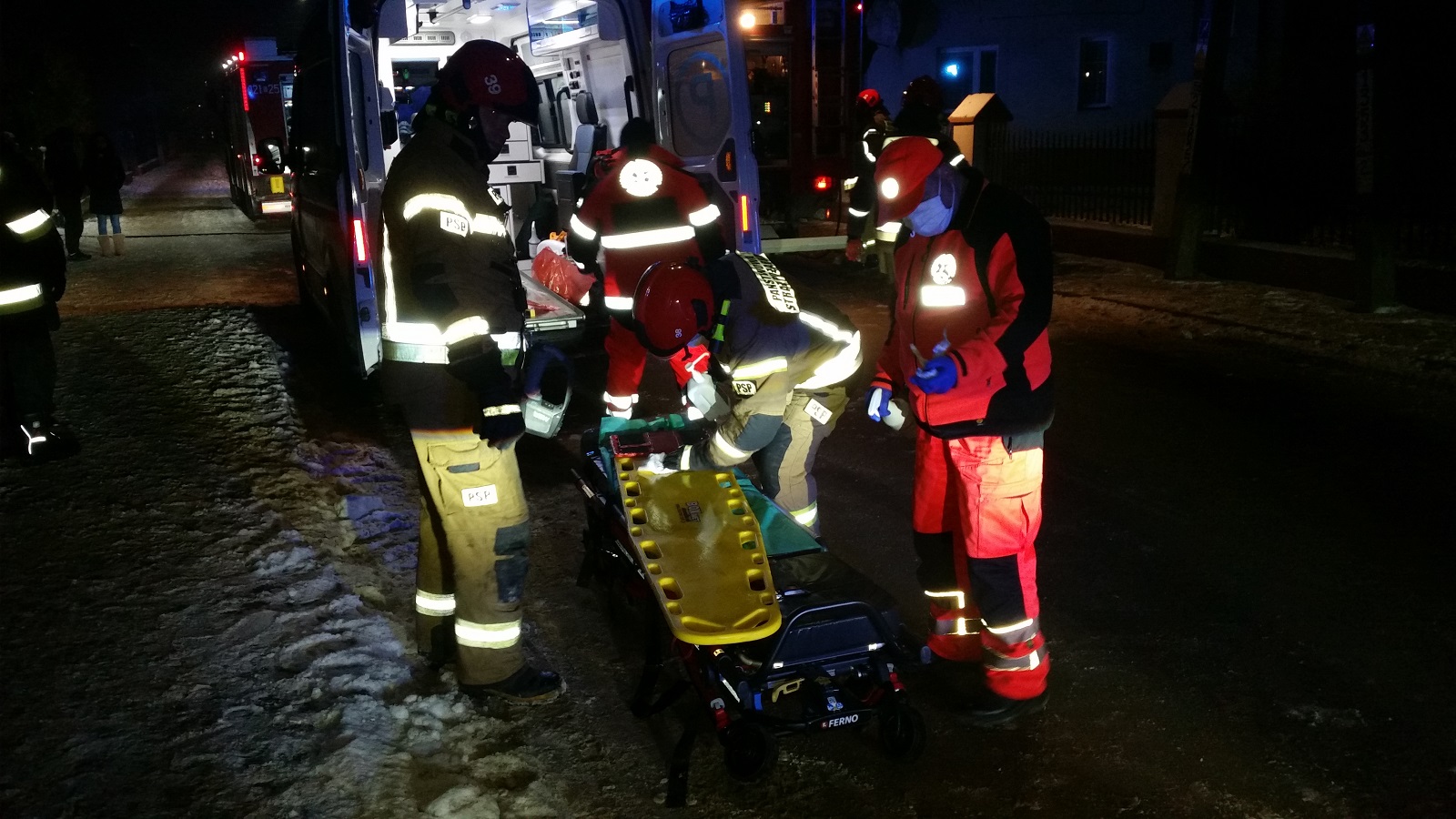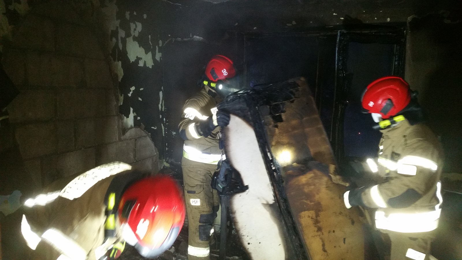 Działania jednostek ochrony przeciwpożarowej polegały na wprowadzeniu do budynku 2 rot gaśniczych w pełnym zabezpieczeniu i nawodnionymi liniami szybkiego natarcia. Jedna rota przystąpiła do gaszenia pożaru, natomiast druga otrzymała za zadanie przeszukanie budynku pod kątem obecności ludzi. W łazience obok palącego się pokoju strażacy znaleźli nieprzytomną kobietę bez funkcji życiowych, którą natychmiast ewakuowali na zewnątrz budynku. Od tego momentu zaczęła się dramatyczna walka o jej życie.