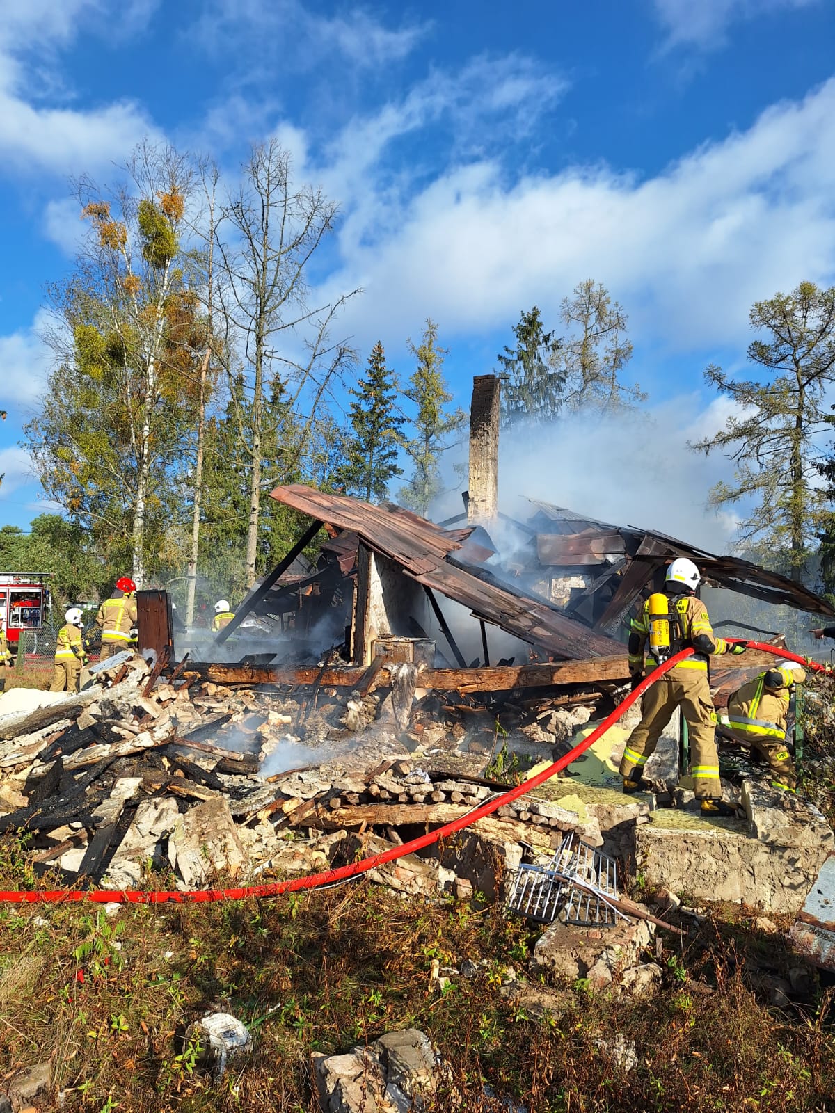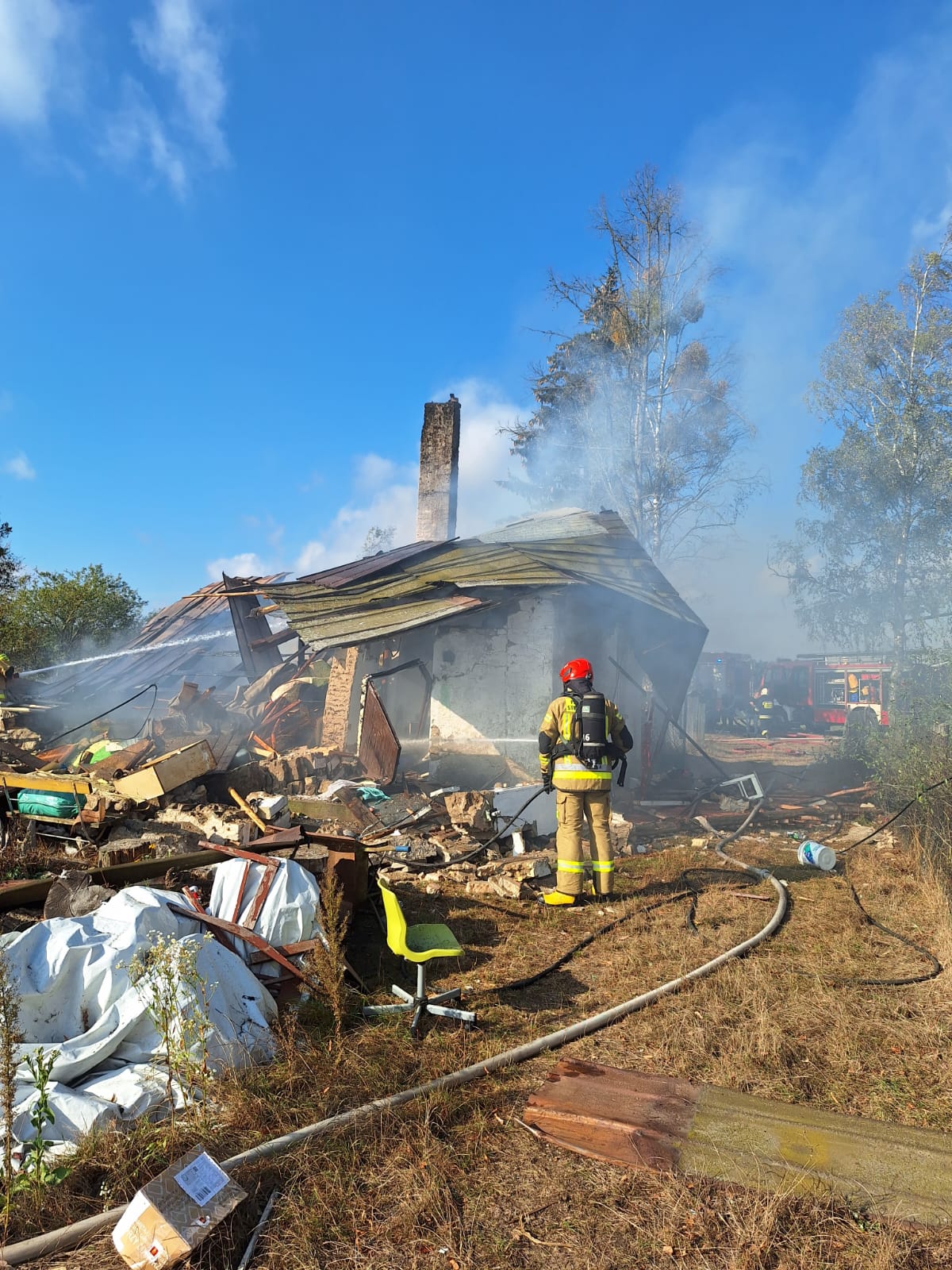 Z otrzymanych informacji wynikało, że jest to dom jednorodzinny, wybuchł gaz, w środku mogą przebywać osoby, dom zniszczony.