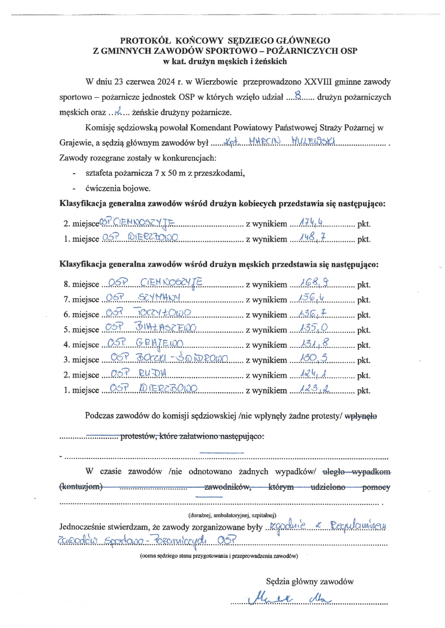 W dniu 23 czerwca 2024 r. w Wierzbowie odbył się Festyn Strażacki, w ramach którego odbyły się XXVIII zawody sportowo - pożarnicze.