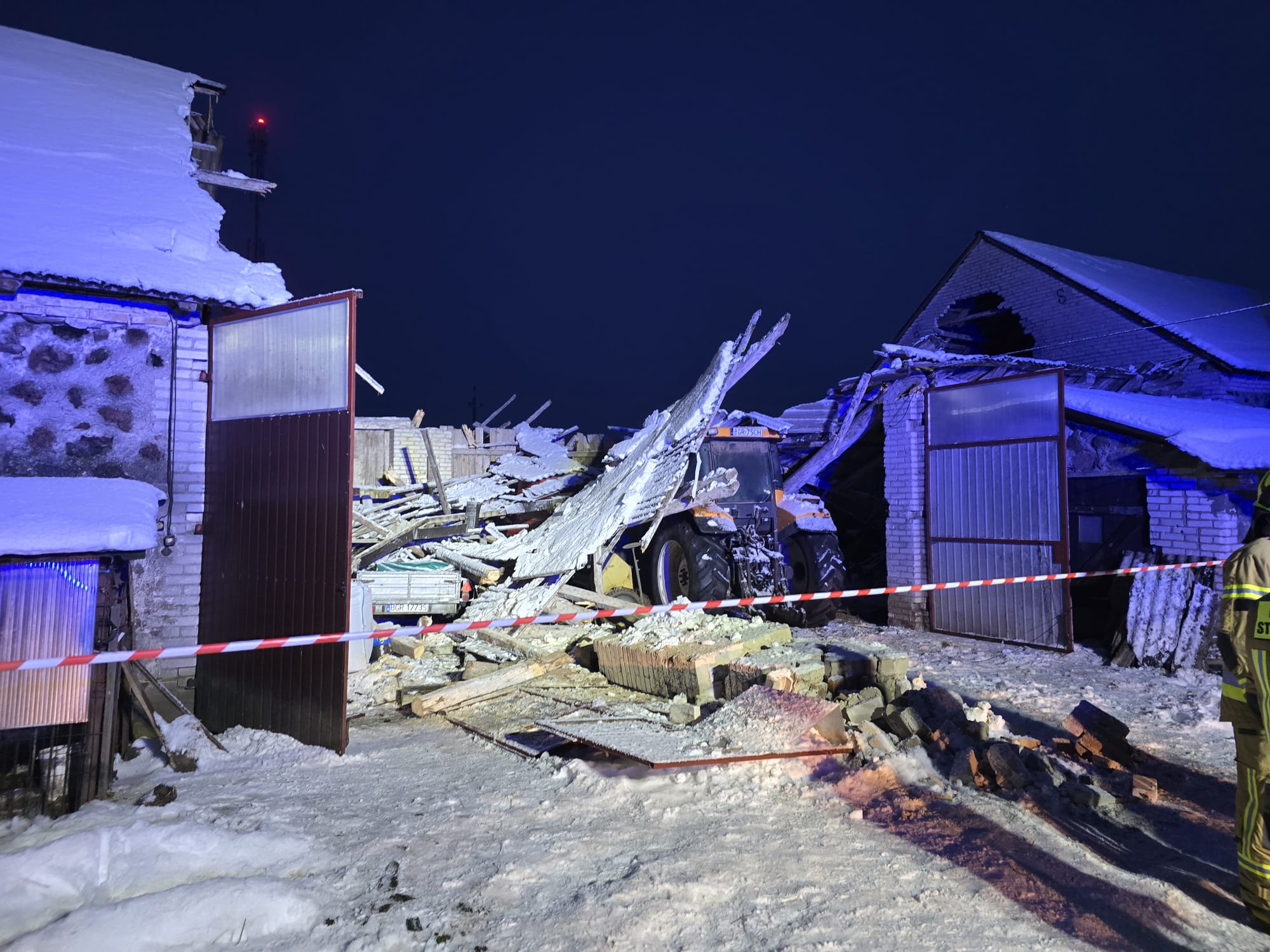 W dniu 28 stycznia br. o godzinie 5:34 do Stanowiska Kierowania Komendanta Powiatowego PSP w Grajewie wpłynęło zgłoszenie o zawaleniu się stodoły w miejscowości Sulewo-Prusy w Gminie Wąsosz. Z informacji wynikało, że w środku nie ma ludzi ani zwierząt. Na miejsce zadysponowano zastępy straży pożarnej z JRG Grajewo oraz OSP Wąsosz, OSP Żebry i OSP Kędziorowo. Przybyli na miejsce strażacy potwierdzili, że uszkodzeniu uległ dach o wymiarach około 10 m x 14 m na budynku murowanej stodoły o wymiarach 10 m x 28 m. Uszkodzona została również jedna ze ścian budynku oraz część szczytu budynku sąsiedniego. Pod zawalonym dachem znajdują się maszyny rolnicze. Na miejsce wezwano pogotowie energetyczne i Powiatowy Inspektorat Nadzoru Budowlanego. Po odłączeniu prądu od budynku strażacy z części niezawalonej ewakuowali 2 ciągniki rolnicze. Po konsultacjach z Powiatowym Inspektorem Nadzoru Budowlanego ustalono, że nie ma potrzeby ewakuowania zwierząt z przylegającej do uszkodzonego budynku obory. Uszkodzony budynek nie nadaje się do użytku, konieczna będzie jego rozbiórka.