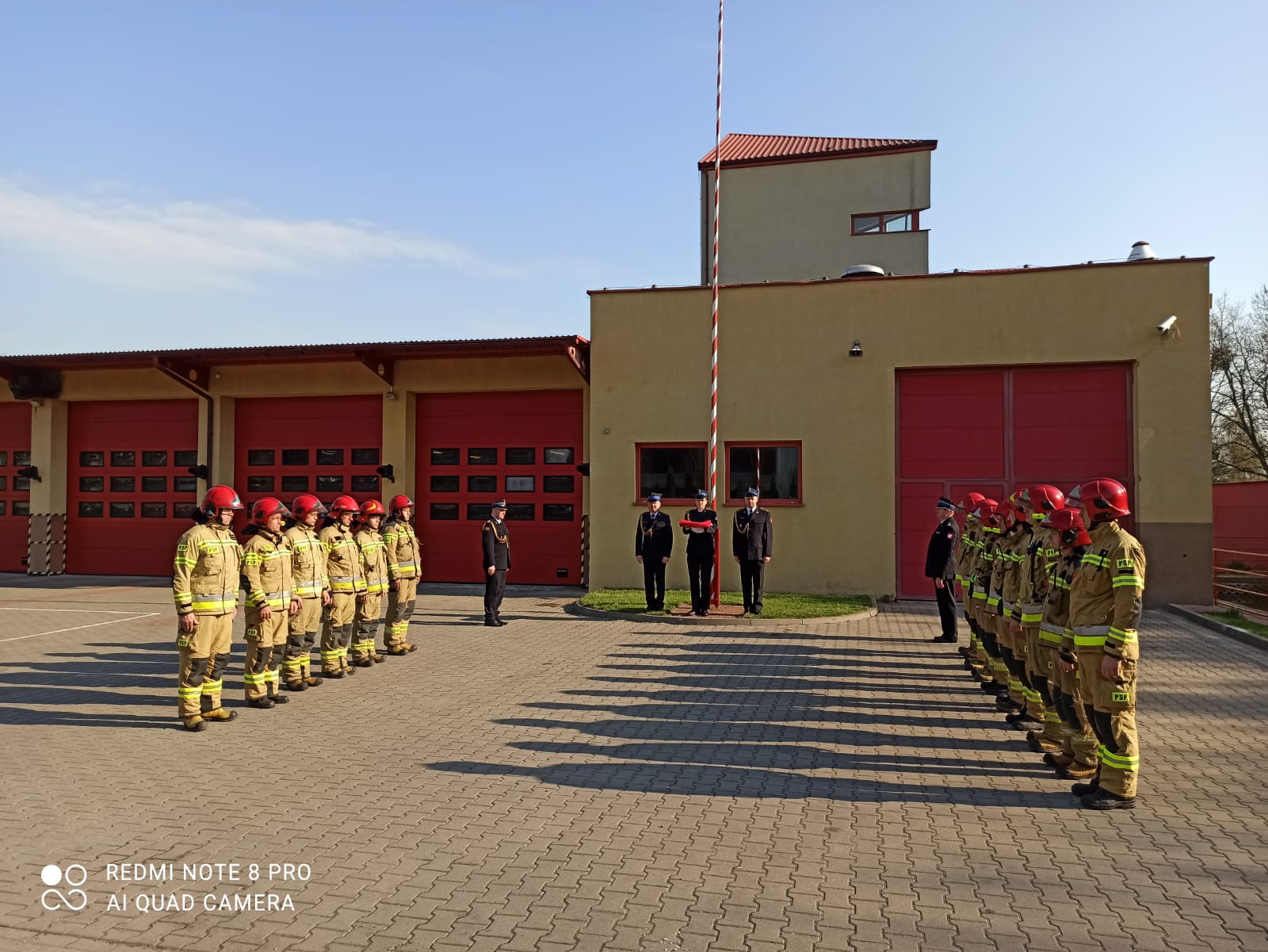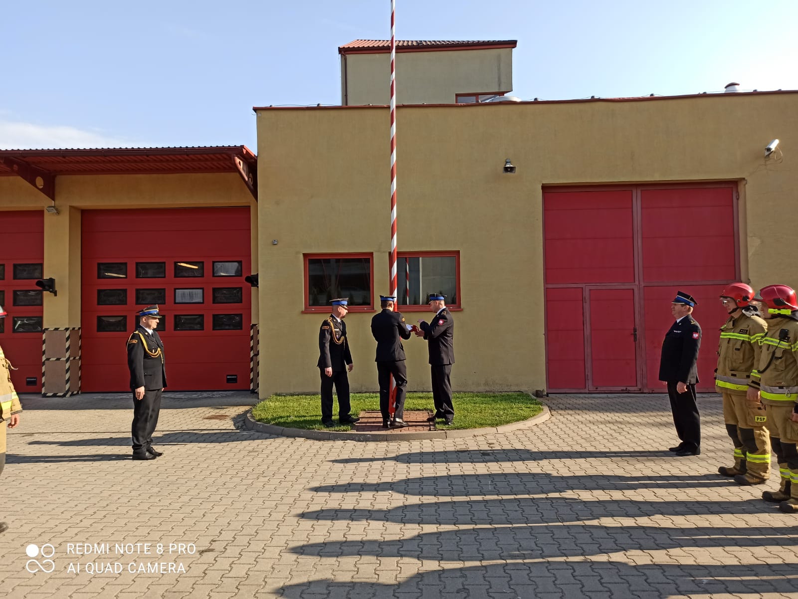 W trakcie grania hymnu państwowego podniesiona została na maszt flaga Rzeczypospolitej Polskiej. Następnie komendant powiatowy PSP st. bryg. Krzysztof Tryniszewski w krótkim wystąpieniu przypomniał zebranym zasady prezentowania barw narodowych oraz jak ważnym symbolem patriotycznym, jednoczącym wszystkich Polaków jest biało-czerwona flaga naszego kraju.