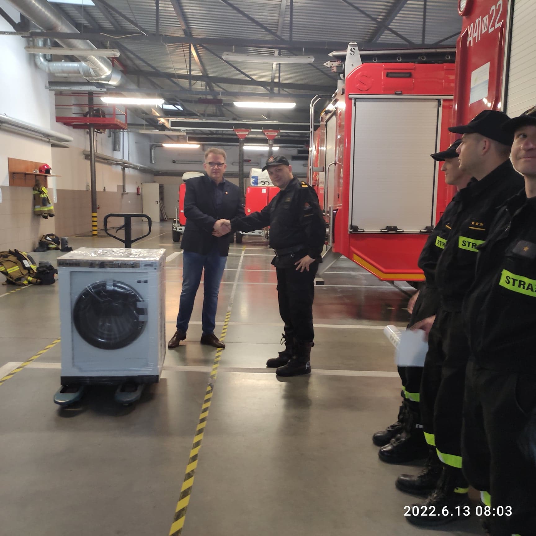 Natomiast 13 czerwca podczas zmiany służby w jednostce ratowniczo-gaśniczej PSP Pan Norbert Cegliński w imieniu firmy TERRA Recycling z Sp. z o.o. z Grodziska Mazowieckiego przekazał strażakom nową pralkę.