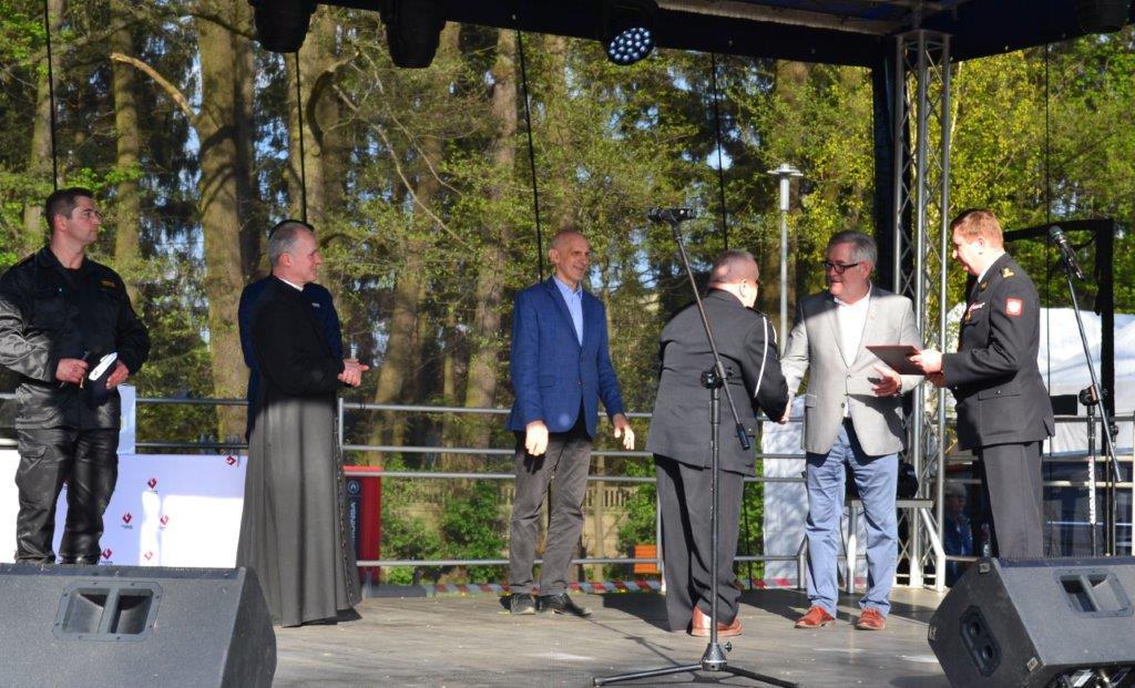 Po mszy strażacy z Państwowej Straży Pożarnej oraz druhny i druhowie z Ochotniczych Straży Pożarnych z terenu gminy Grodzisk Mazowiecki wyróżnieni zostali nagrodami rzeczowymi ufundowanymi przez Burmistrza Grodziska Mazowieckiego oraz z Radę Miasta. Panu Burmistrzowi Grzegorzowi Benedykcińskiemu wręczony został Medal Honorowy im. Bolesława Chomicza nadany przez Zarząd Główny Związku Ochotniczych Straży Pożarnych Rzeczypospolitej Polskiej za zasługi dla rozwoju i umacniania Związku OSP RP oraz Ochotniczych Straży Pożarnych.