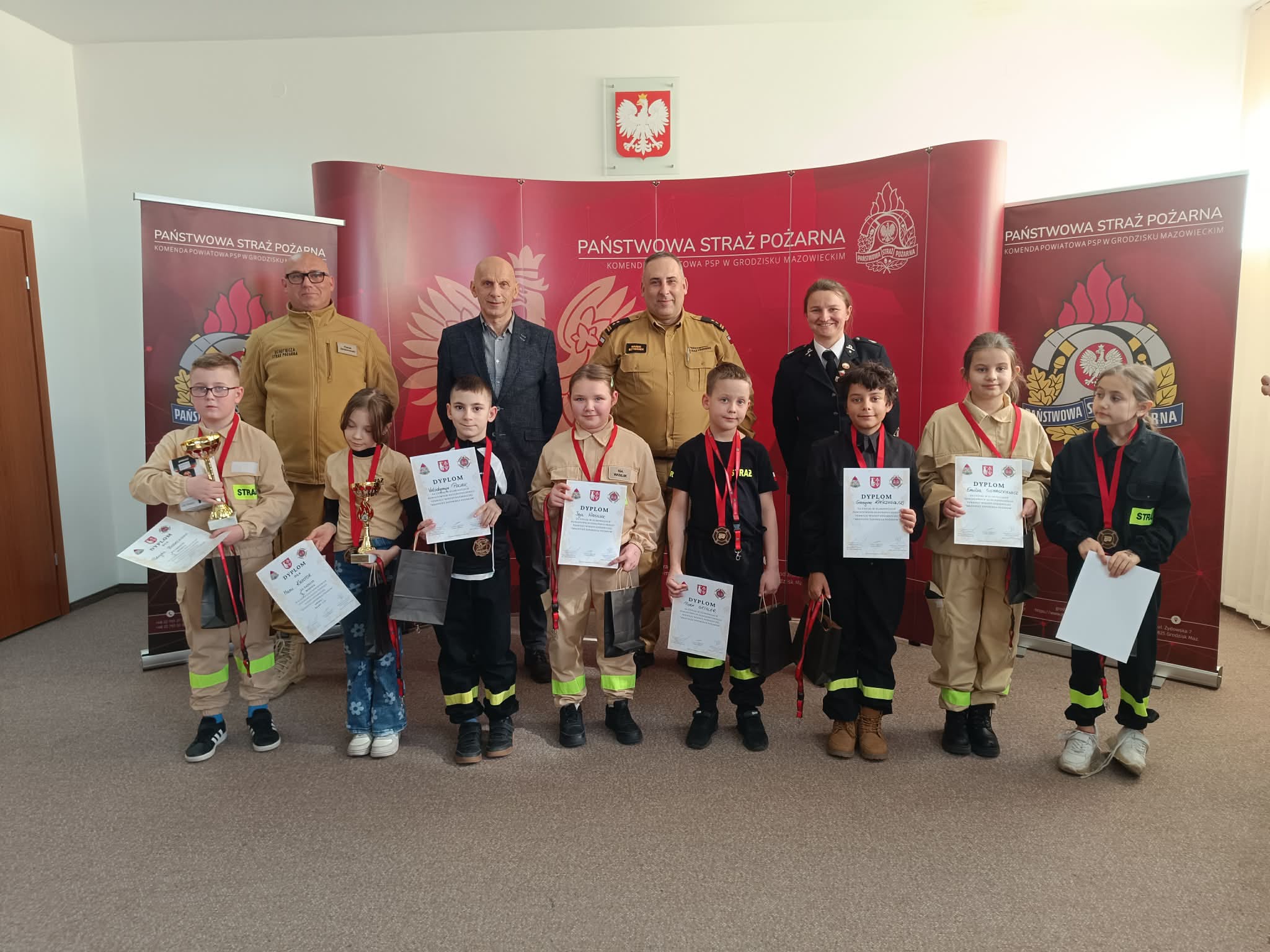 7 marca 2026 r. w siedzibie Komendy Powiatowej Państwowej Straży Pożarnej w Grodzisku Mazowieckim przeprowadzono eliminacje powiatowe XLVIII Edycji Ogólnopolskiego Turnieju Wiedzy Pożarniczej „Młodzież Zapobiega Pożarom”.