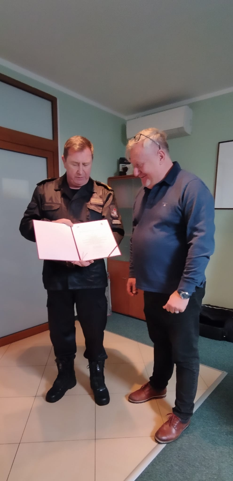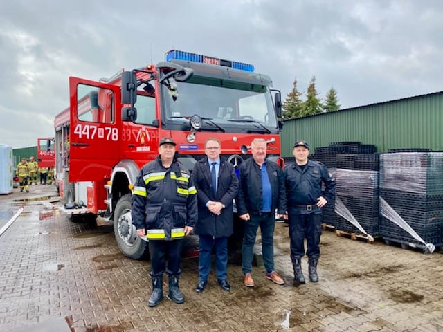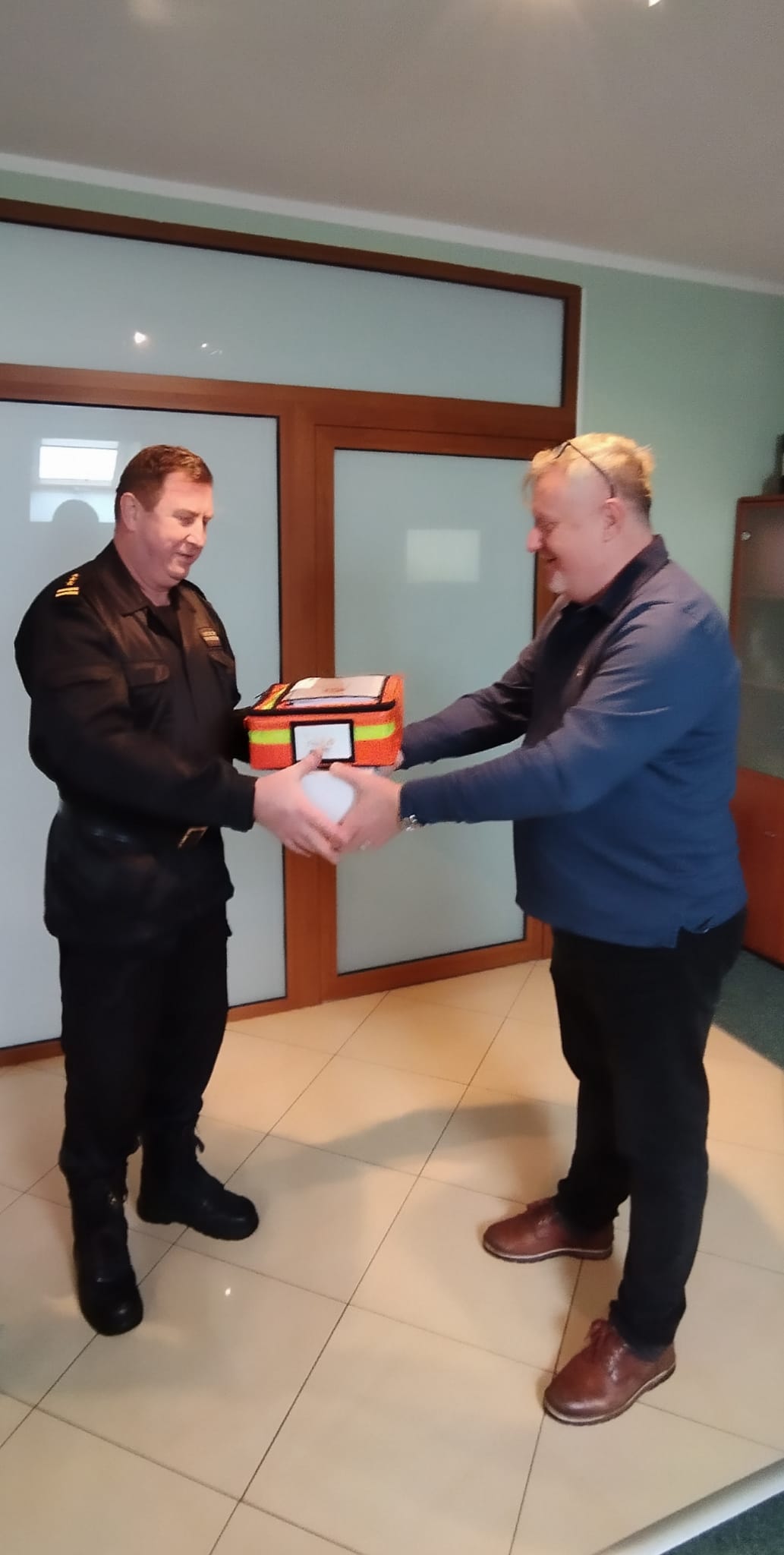 Po zakończeniu ćwiczeń Dyrektor Generalny Swedeponic Polska sp. z o.o. Pan Wojciech Kozłowski przekazał komendantowi powiatowemu PSP w Grodzisku Mazowieckim st. bryg. Krzysztofowi Tryniszewskiemu sprzęt, który będzie pomocny podczas prowadzenia działań ratowniczo–gaśniczych oraz w realizacji szkolenia zawodowego strażaków Jednostki Ratowniczo–Gaśniczej w Grodzisku Maz.