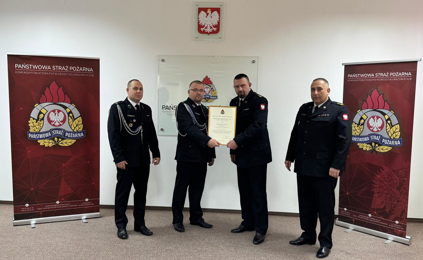 11 grudnia 2024 r. w siedzibie Komendy Powiatowej Państwowej Straży Pożarnej w Grodzisku Mazowieckim bryg. Marcin Strzyżowski – Komendant Powiatowy PSP w imieniu Komendanta Głównego PSP nadbryg. Mariusza Feltynowskiego dokonał uroczystego wręczenia decyzji przedłużających włączenie jednostek OSP Boża Wola i OSP Żelechów w struktury Krajowego Systemu Ratowniczo-Gaśniczego.