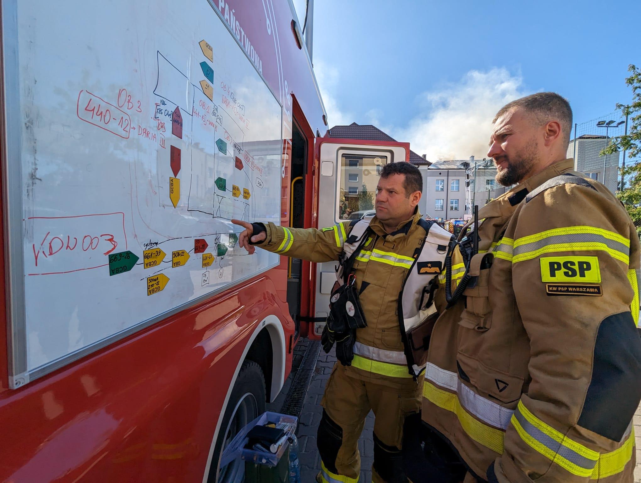 Na miejsce zdarzenia zadysponowane zostały dodatkowe siły i środki oraz specjalistyczny sprzęt z Warszawy oraz z powiatu pruszkowskiego, warszawsko zachodniego i sochaczewskiego. Przybyły na miejsce zdarzenia Mazowiecki Komendant Wojewódzki PSP nadbryg. Artur Gonera wraz z grupą operacyjną przejął dowodzenie i powołał sztab koordynujący działania ratownicze.